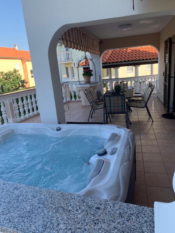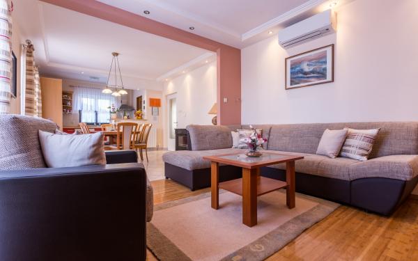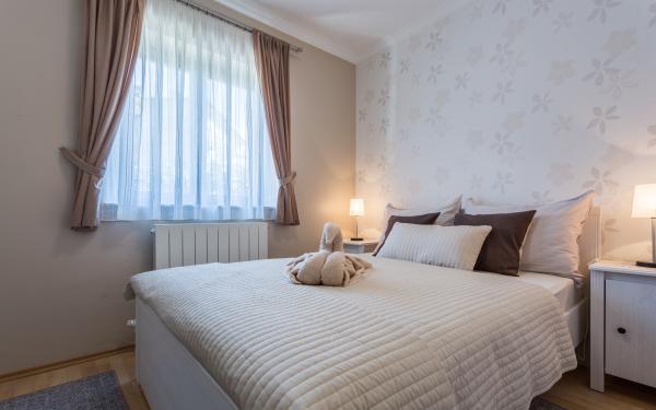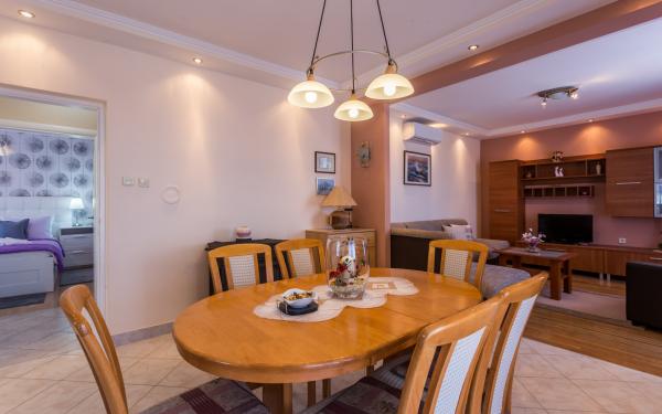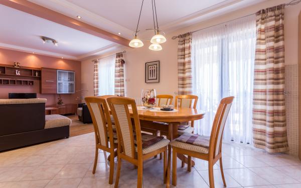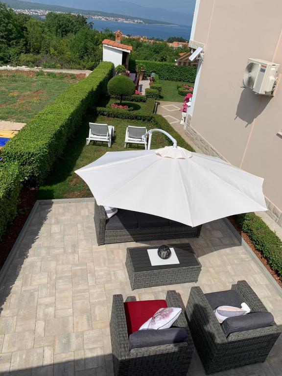 Kompletně moderní apartmán se nachází v klidném místě Sv. Pohled na Malinska. Byt se nachází v přízemí domu a ve dvoře se nachází parkovací místo, vířivka, prostor na opalování, dětské hřiště a venkovní gril. Od města Malinska, kde jsou pláže, kavárny, restaurace a další zábavní zařízení, jeden kilometr daleko.