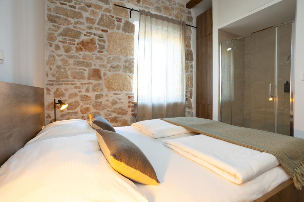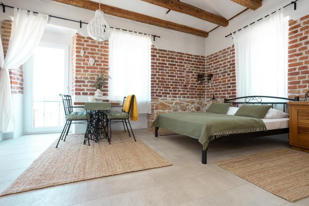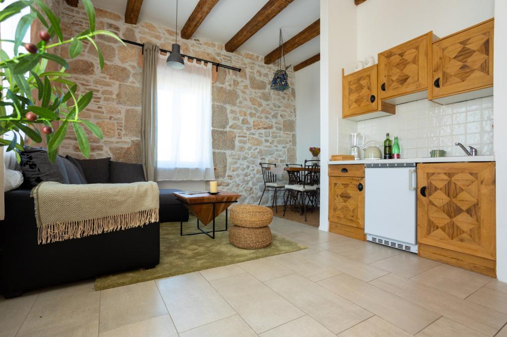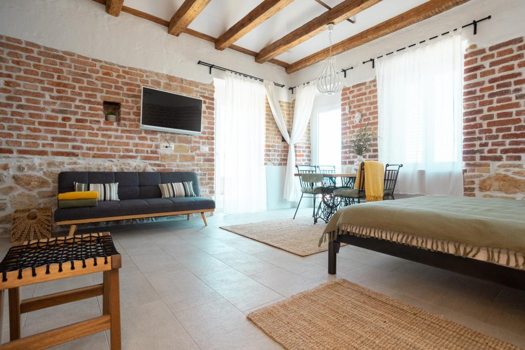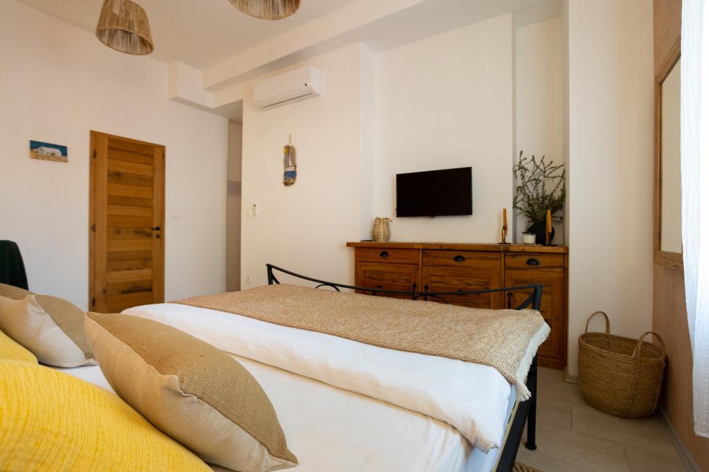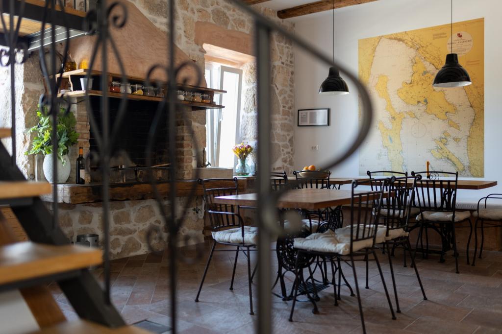 Dům se nachází v centru města, s výhledem na hlavní náměstí, přístavu, pláže a promenády. Nově zrekonstruovaný objekt se skládá z 5 ložnic s koupelnami, 2 apartmány a pokoje pro společenský život. Dům je zařízen ve středomořském stylu. V přízemí se nachází restaurace, kde je možnost snídaní, obědů a večeří za příplatek. Parkování je možné v okolí budovy a nabitá.