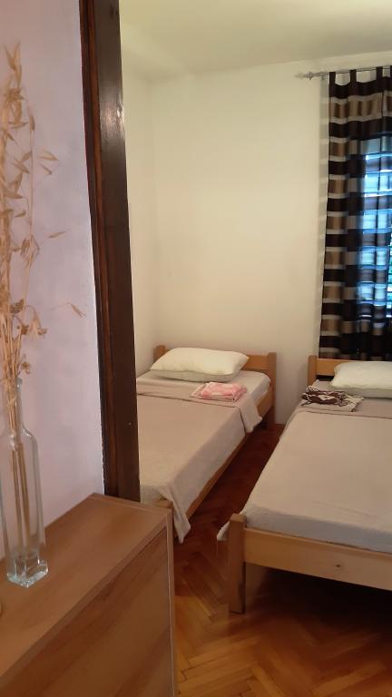 Apartmány Valentin jsou 2 dvoulůžkové apartmány AP1 "VELKÝ" (ID: 73494) a AP2 "MALÝ" (ID: 13633) se dvěma přistýlkami v PŘÍZEMÍ rodinného domu. Apartmány pronajímáme od roku 2004 a v našich apartmánech se ubytovaly stovky hostů - doufáme, že byli spokojeni! Každý apartmán má samostatný vchod, parkovací místo, klimatizaci, TV v KAŽDÉM pokoji a další vybavení pro pohodlný pobyt dvou čtyřčlenných rodin. Dům se nachází na konci slepé ulice - není zde žádný provoz. Na dvoře s bohatou zelení je vestavěný gril, který mohou hosté využívat. Vzdálenost od první vybavené pláže se sprchami je cca 400m - asi 8 minut chůze. Pokud rádi chodíte pěšky, objevíte různé zátoky a pláže. Celá Malinska je vlastně vybavená pláž. PODÍVEJTE SE NA VIDEO PROCHÁZKY DVOREM A APARTMANY!