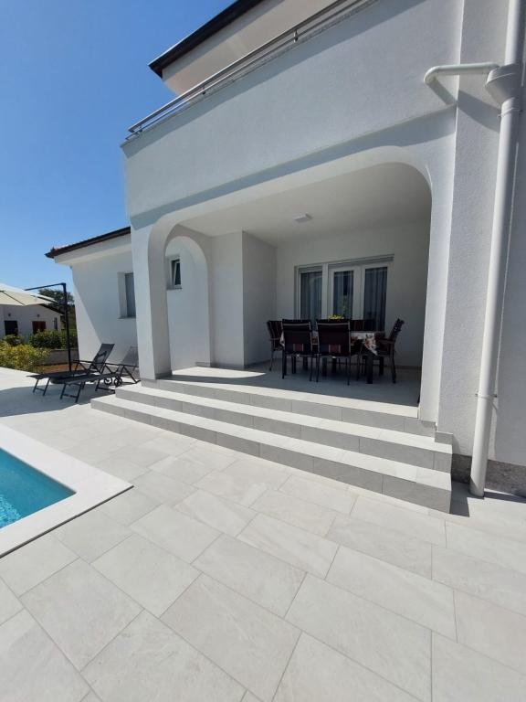 Plně a moderně vybavený dvoupokojový apartmán s bazénem v klidném prostředí, nacházející se ve Sv. Anton nedaleko Malinské. Velikost 110m2. Špičkové ubytování pro rodiny nebo hosty, kteří chtějí příjemnou a klidnou dovolenou. Dvě ložnice s vlastní koupelnou. Možné ubytování až pro 6 osob. Uzavřené parkoviště. Klimatizované. Bazén využívají pouze hosté apartmánu.