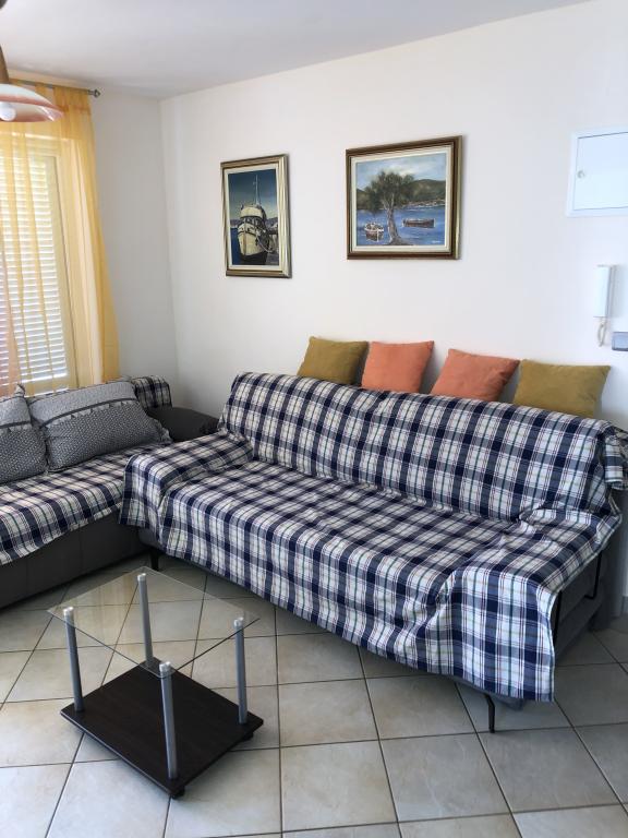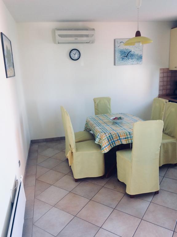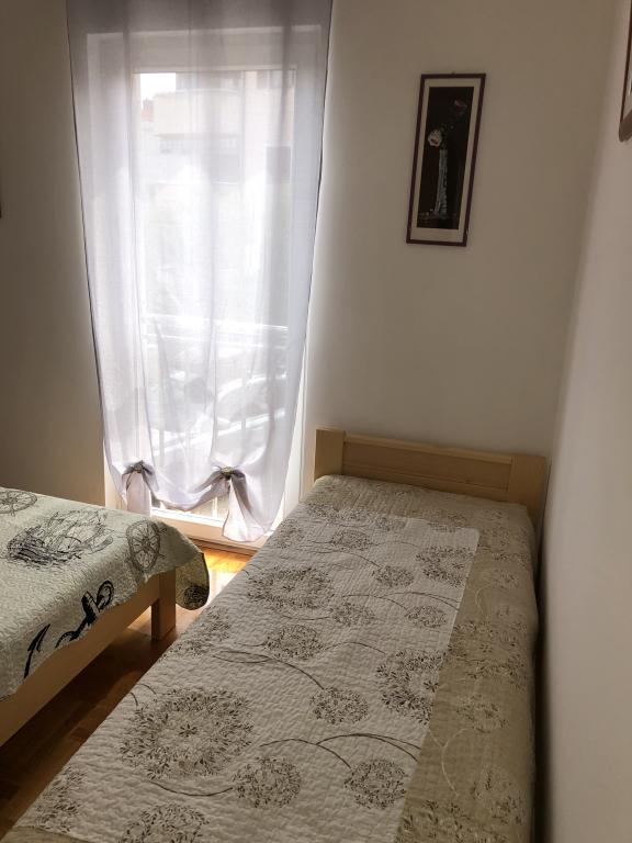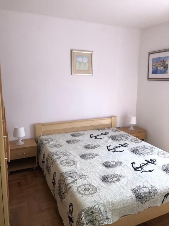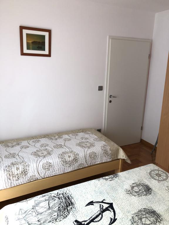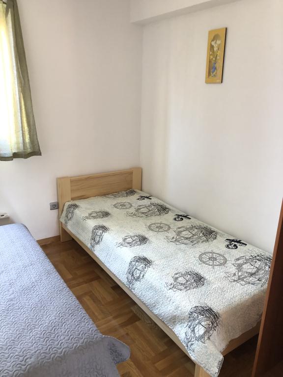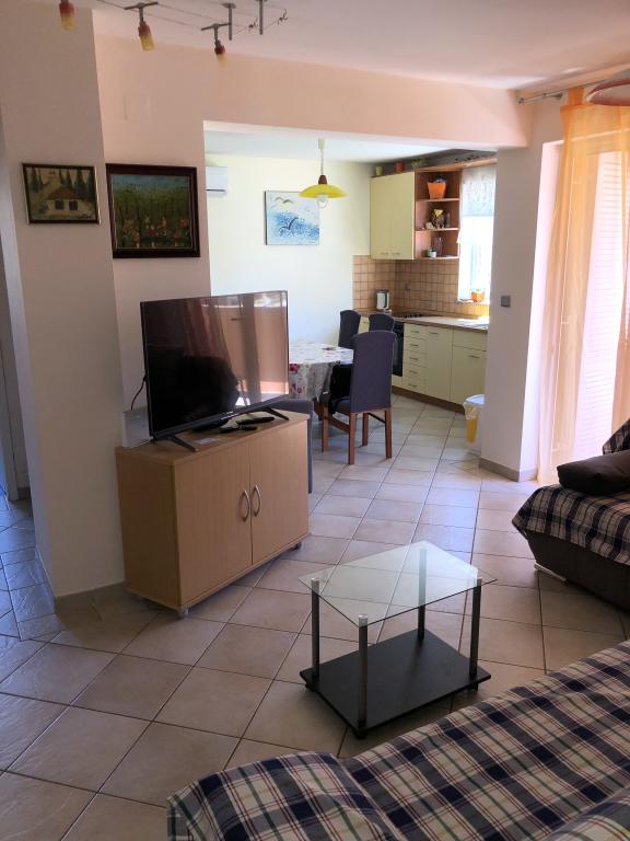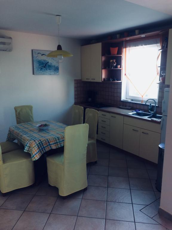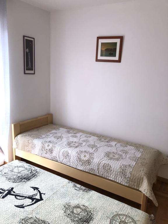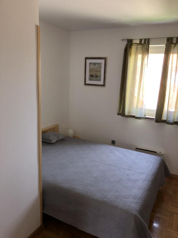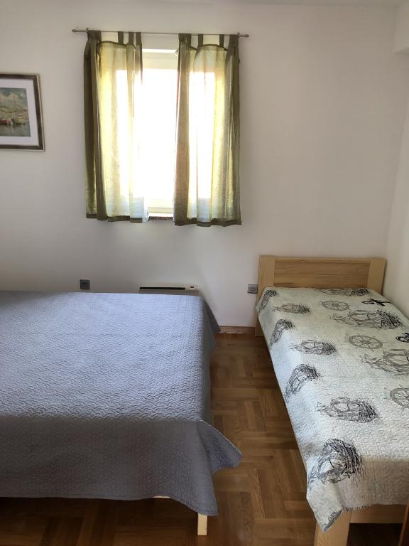 Byt 3+1, 62 m2, s balkonem, se nachází v prvním patře budovy v klidné části Malinska. Parkování u budovy. K moři je to 12 minut chůze. V první ložnici je manželská postel 150 x 200 cm a jednolůžko 90 x 200 cm. V druhé ložnici je manželská postel 160 x 200 cm a jednolůžko 80 x 200 cm. V obývacím pokoji je velká rozkládací pohovka 200 cm, na které se pohodlně vyspí 2 dospělí.