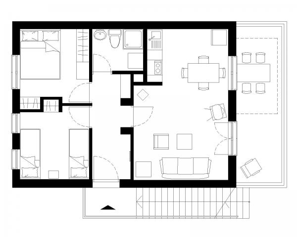 Apartmán pro dvě osoby se dvěma přistýlkami (49 m2)
