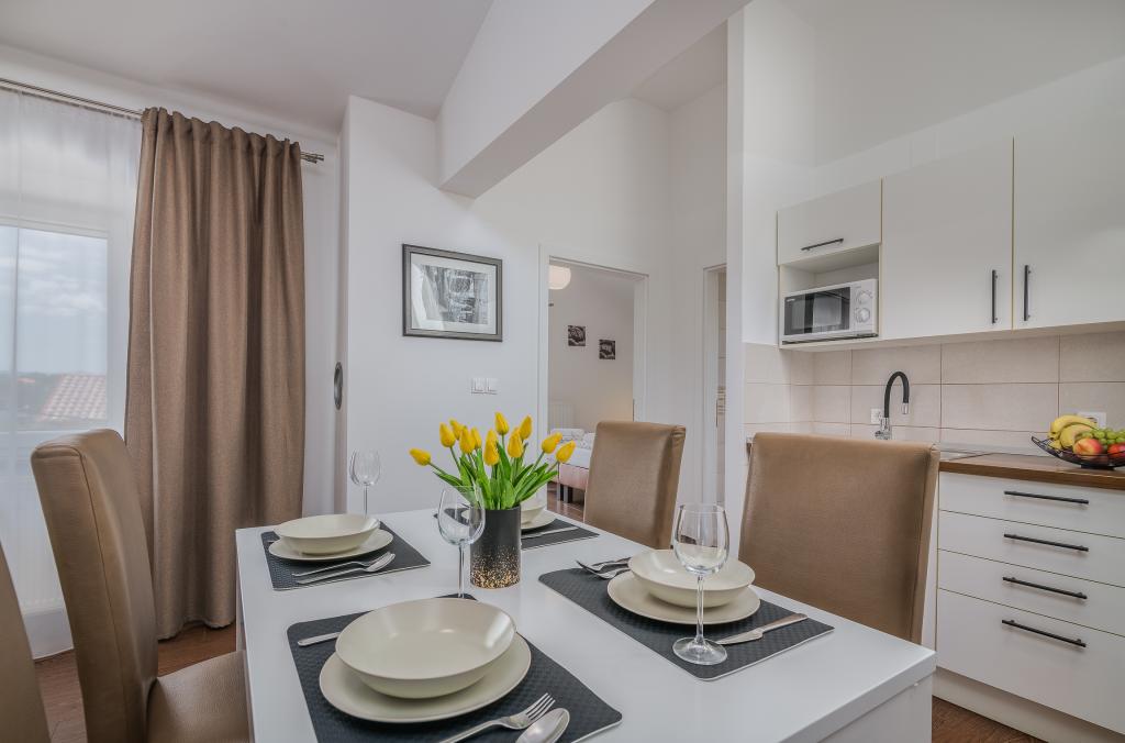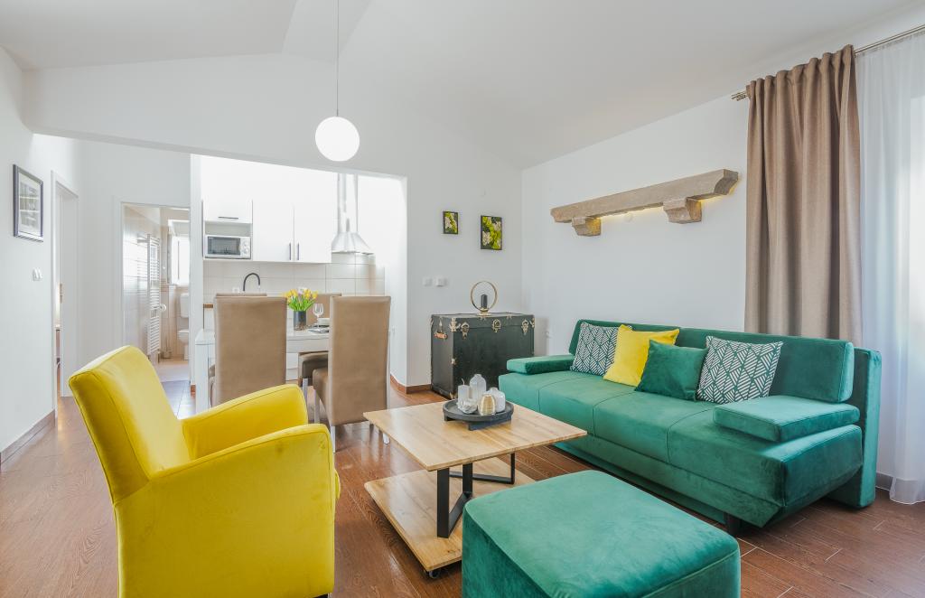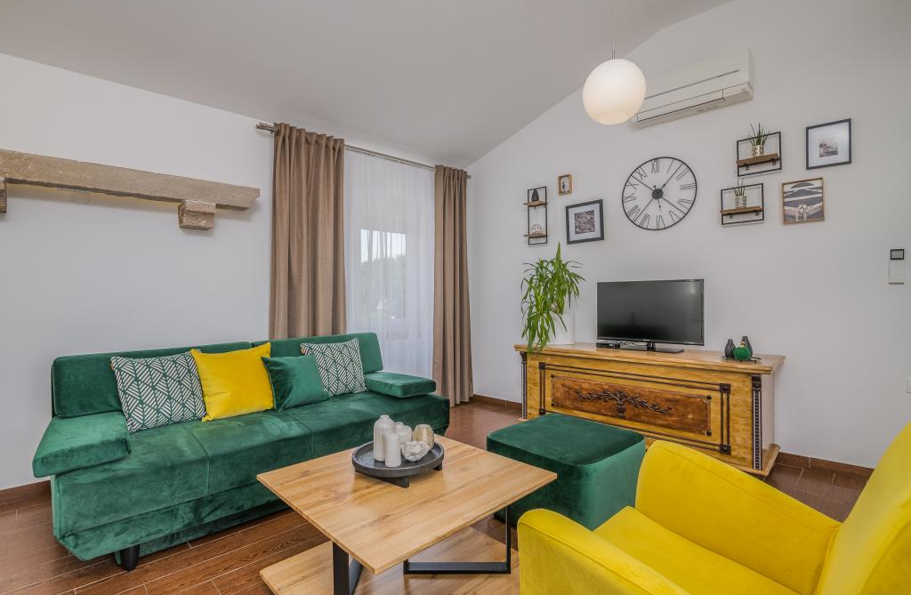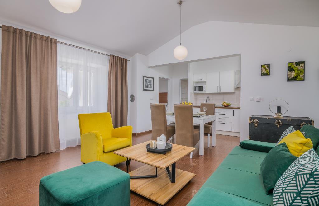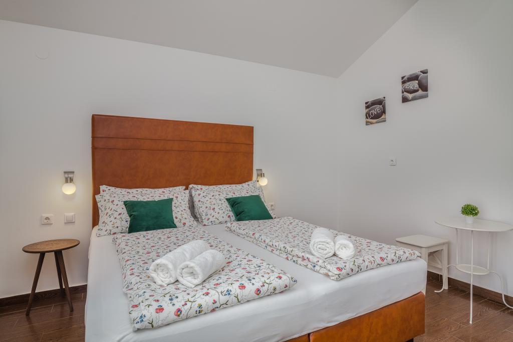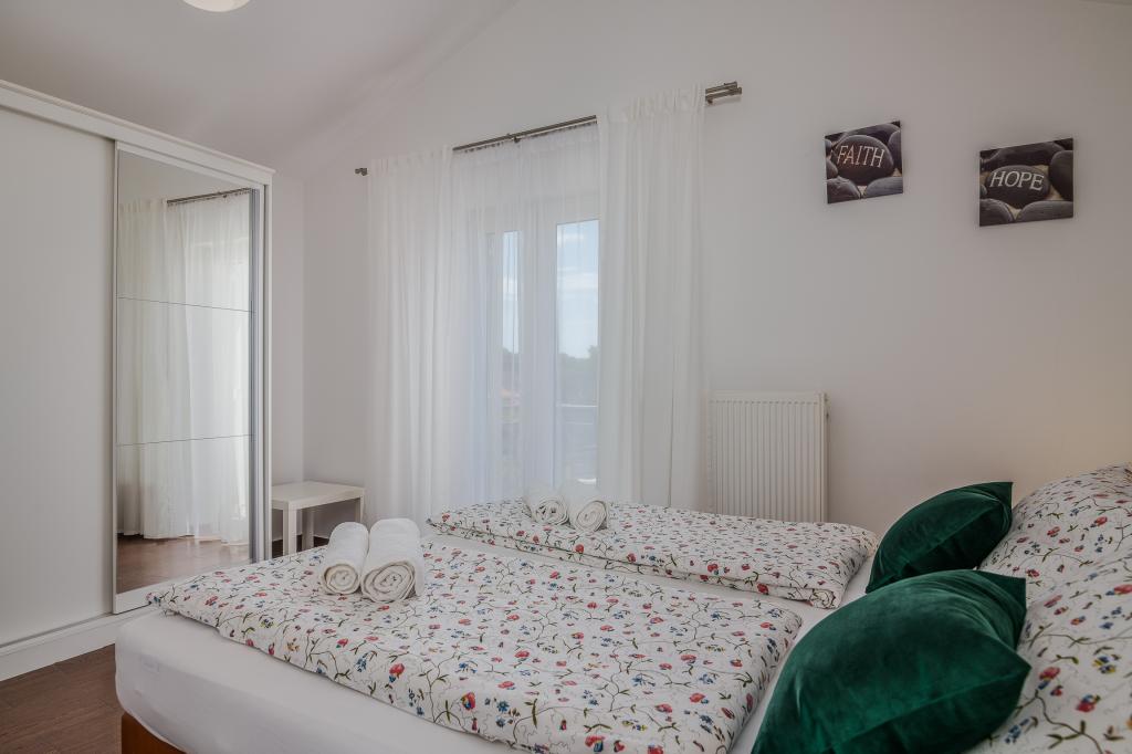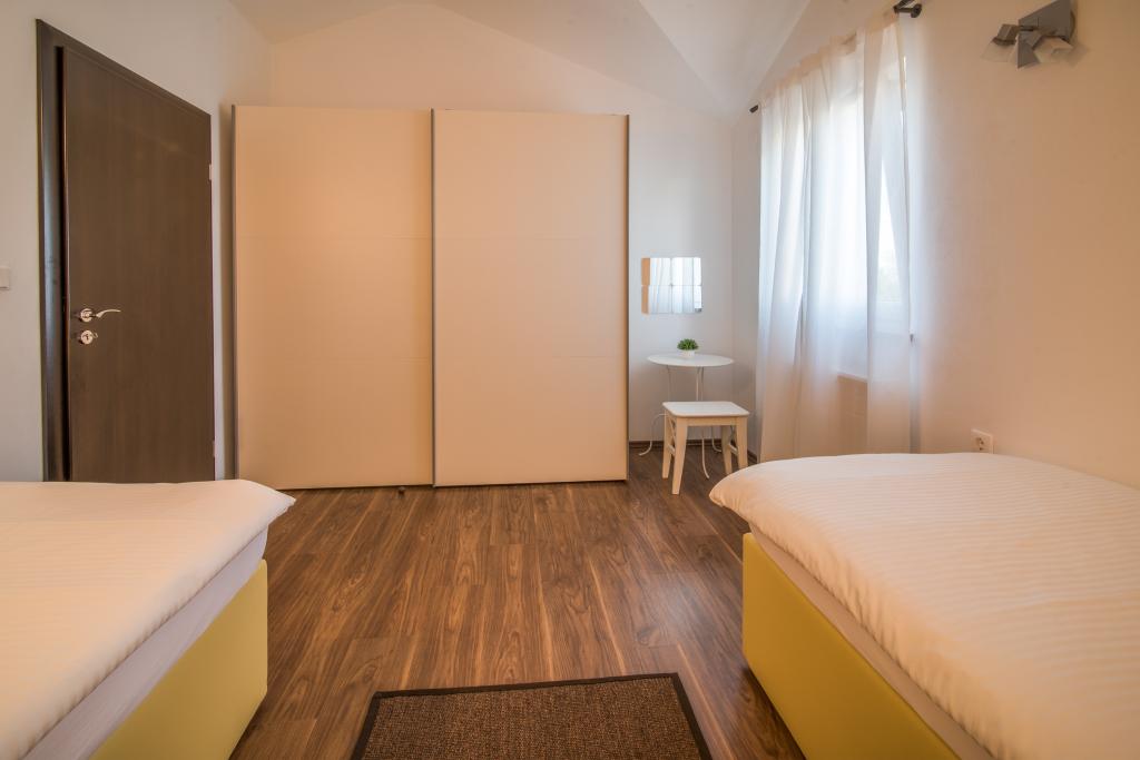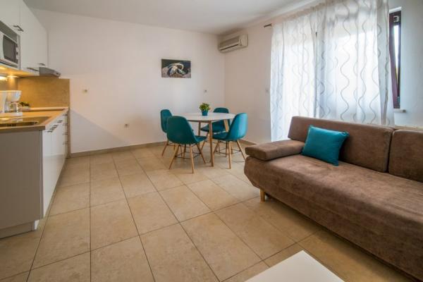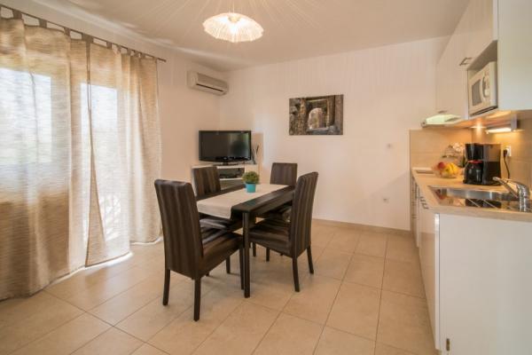 Středomořské vegetace, opojnou vůni moře, klid a pohodu, v blízkosti pláže, restaurace a obchody nejlépe popsat místo, kde naše apartmány. 250 m od krásné zátoky zákopu a 1500 m od centra městečka Malinska ideální volbou pro rodinnou dovolenou. V přízemí domu jsou dva apartmány a poskytují ubytování pro 4-5 osob. Každý apartmán má vlastní terasu, společná zahrada a soukromé parkoviště. V našem dalším domě je nové a moderní apartmány se dvěma ložnicemi a třemi terasami, která nabízí ubytování pro 6 osob. Má svůj vlastní vchod, nádvoří, parkování a všechny možnosti mírového a útulný domov. Apartmány jsou vybaveny TV se satelitním příjmem a bezdrátový přístup k internetu.