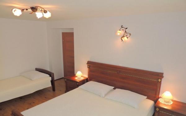 Tato nemovitost se nachází v malebné vesničce Gabonjin na ostrově Krk. Je to 5 minut jízdy od turistického centra Malinska. V obci se nachází obchod, kostel, dětské hřiště (fotbal, láhve, basketbal). Vesnice má dva kostely, jeden z 13. století, který k ní vede hlaholský lid. Byt I, 1. patro, Byt má obývací pokoj s kuchyní, pokoj a koupelnu. Má manželskou postel v pokoji a přistýlku v pokoji a postel v obývacím pokoji. Byt je kompletně zařízený. (kuchyň, prádlo, ručníky). K bytu náleží terasa. Byt II - přízemí. Byt má obývací pokoj s kuchyní, pokoj a koupelnu. V pokoji je manželská postel a v obývacím pokoji možnost přistýlky pro dvě osoby. Byt je kompletně zařízený. Má pračku a nádobí Oba apartmány jsou vybaveny: klimatizace, mikrovlnná trouba, trezor, satelitní TV, rychlovarná konvice, kávovar s filtrem, vysoušeč vlasů, lednička, parkování, bezdrátový internet.