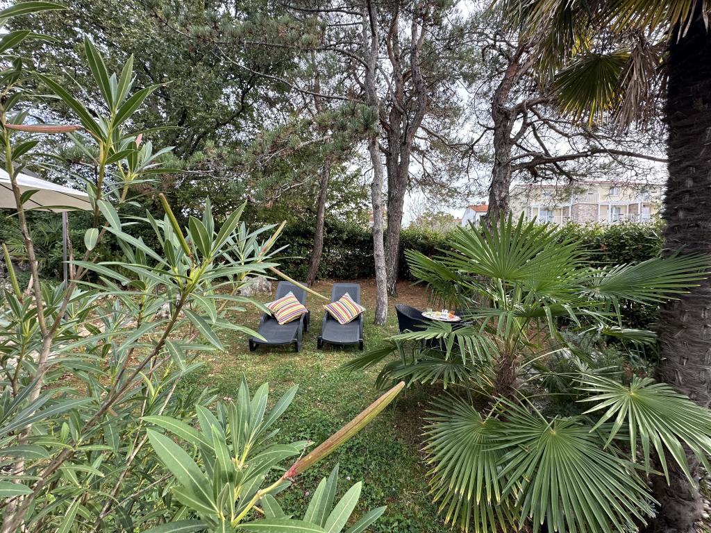 Apartmány 50m2 s terasami a zahradou 200m2 se nacházejí v klidné oblasti 100m od moře a pláže zálivu Rova. K dispozici je samostatné soukromé a bezpečné parkoviště ve stínu. V bezprostřední blízkosti se nachází dětský park, vodní sporty, venkovní posilovna a mnoho restaurací a plážových barů, promenády podél moře a cyklostezky. V prostorné zahradě plné středomořské zeleně je příjemné strávit celý den ve stínu.