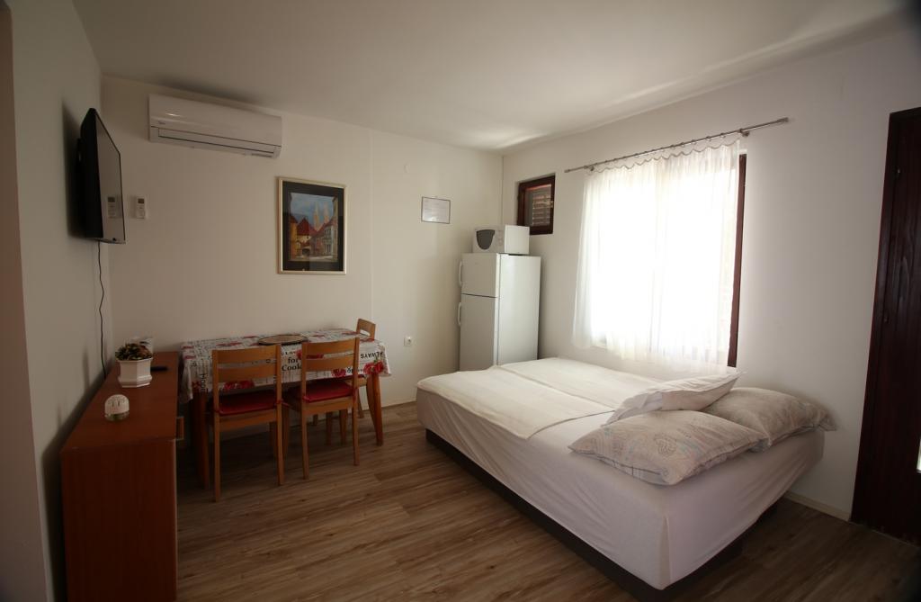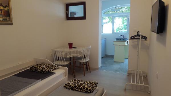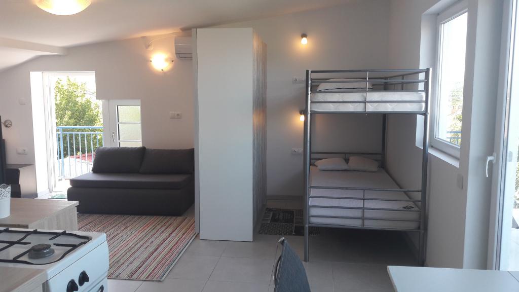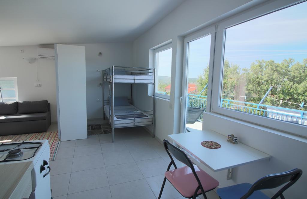 V klidné a zelené části Svetog Vid se nachází soukromý dvojdům s plně a funkčně vybavenými apartmány pro 2-6 osob. Všechny byty mají vlastní terasy, ze kterých se vstupuje do jednotky. Majitelé bydlí ve svém bytě v přízemí domu. Na dvoře je velký stůl s lavicemi a grilem. Parkování je ve dvoře ve stínu pod duby. Je to 15 minut chůze do centra města Malinska a 20 minut chůze na první pláž. V okolí je mnoho krásných pláží, promenád podél moře a cyklostezek. Pro ty, kteří hledají dobrou zábavu, je nedaleko (cca 2 km) noční klub Diamant. Klimatizace, pobytová taxa, registrace, závěrečný úklid, Sat TV, ložní prádlo, ručníky, utěrky, mycí prostředky, houby, toaletní papír a mýdlo jsou zahrnuty v ceně a parkování a Wi-Fi jsou zdarma. PŘÍPLATKY: - Domácí zvíře = 5 €/den - 1 pes - Praní prádla = 3 €, - topení od 4-6 €/den - Pouze 1 noc je o 30 % DRAŽŠÍ
