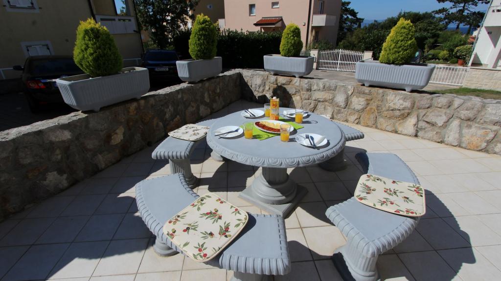 Vítejte na stránce apartmánů Totić v Malinska. Náš dům se nachází v Malinska, známém pobřežním městě na ostrově Krk. Pokud chcete strávit dovolenou v blízkosti moře a centra Malinska, jste na správném místě! Naše dvoupokojové apartmány s obývacím pokojem jsou v turistickém ruchu od roku 2002 a nacházejí se na ostrově Krk ve městě Malinska. Mají balkon, terasu, gril a parkoviště. Obchody a restaurace jsou asi 200 metrů daleko. Ordinace a lékárna se nachází v samém centru. Letiště Rijeka je 15 km od Malinska. Ostrov Krk se vyznačuje mírným středomořským klimatem, čistým vzduchem, čistou vodou a množstvím přírodních a kulturních krás. Oblíbené letovisko Malinska se nachází na západě ostrova Krk. Oblast Malinska je známá svými 260 slunečnými dny v roce. Na koupající se v Malinské čeká mnoho krásných pláží a zátok spolu s řadou sportovních zařízení, včetně půjčoven lodí. Téměř ve všech částech Malinska jsou kavárny a malá náměstí