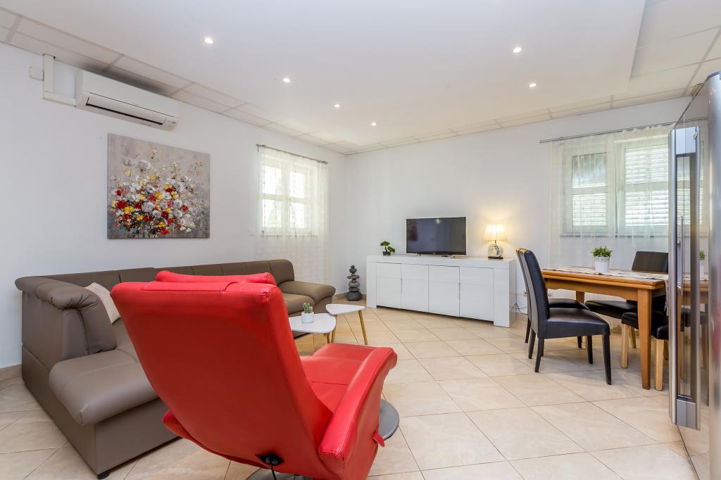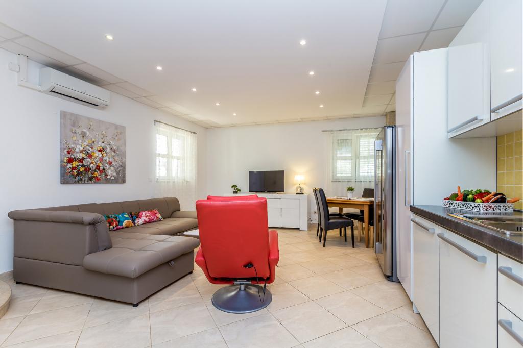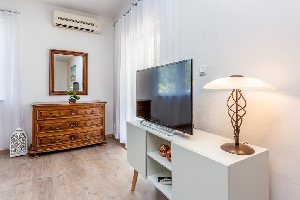 Vítejte ve Villa Antonella - zelené oáze pro relaxaci a užívání si zasloužené dovolené v pohodlných apartmánech. Užijte si prostornou zelenou zahradu a zároveň relaxujte u křišťálově čistého a vyhřívaného bazénu. Společenské setkání u společného grilování je vždy možností a vytváří vřelou a přátelskou atmosféru, díky níž bude každý okamžik vašeho pobytu výjimečný, když budete objevovat všechna kouzla, která Villa Antonella nabízí. Navíc si můžete užívat soukromí na svých prostorných balkonech či terasách. Prozkoumejte krásné pláže a místa ostrova, buď na kole po více než 500 km značených stezek, procházkami podél moře, lesem a vesnicemi, pádlováním vestoje na pláži, půjčením motorového člunu nebo organizovanými jednodenními výlety lodí. Kamkoli se vydáte, potkáte autochtonní kamenné domy, kamenné zdi, místní lidi a hlavně krásnou přírodu, vůně Středozemního moře a perleťově čisté moře. Na BC hrdě neseme hodnocení 9,8, což potvrzuje naši oddanost k naprosté spokojenosti našich milých hostů, kteří se často vracejí.