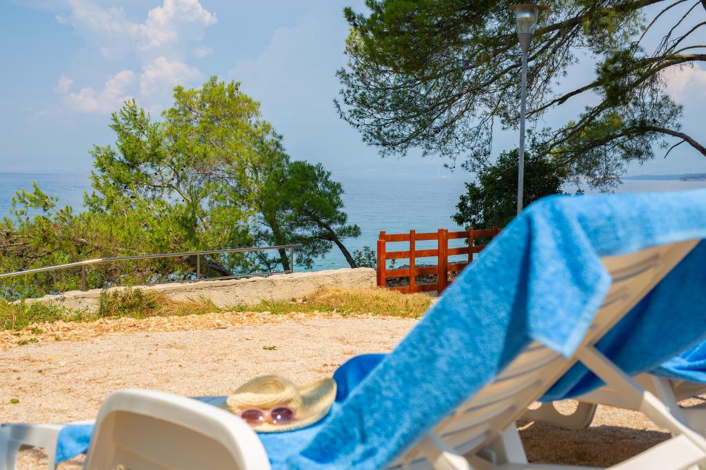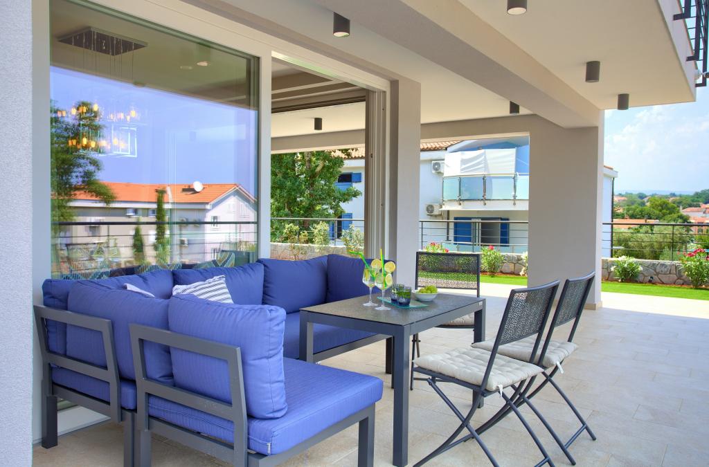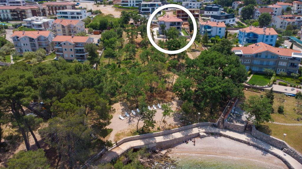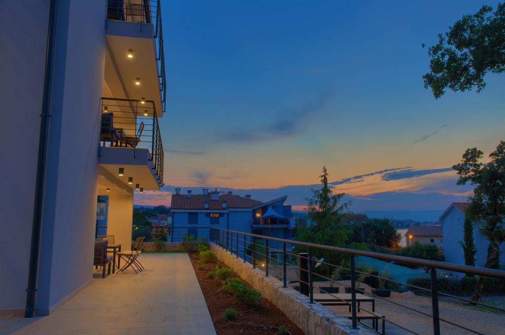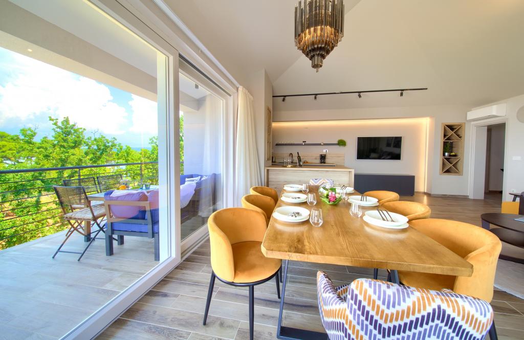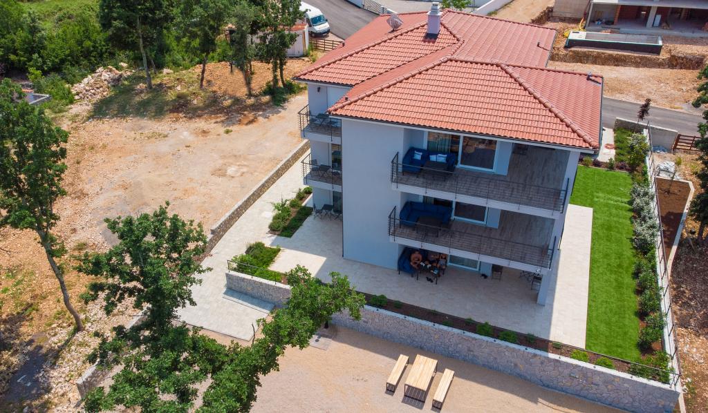 Vista Deluxe Apartments se nachází na krásném místě, jen pár kroků od oblázkové pláže a je obklopen svěžím dubovým lesem. S pláží na dosah ruky budete pravděpodobně trávit slunečné dny a užívat si křišťálově čistého moře, ale pro ty, kteří dávají přednost svému soukromí, tento krásný prázdninový dům nabízí soukromou venkovní vířivku na každém balkonu a jako další potěšení nádherný výhled na moře relaxace ve vířivce na balkoně. Každý apartmán má moderní otevřenou kuchyň s jídelním koutem a obývací pokoj, který se otevírá na prostorný balkon s lehátky, vířivkou a otevřeným jídelním koutem. Každý apartmán má tři pěkně zařízené ložnice, všechny s vlastní koupelnou.