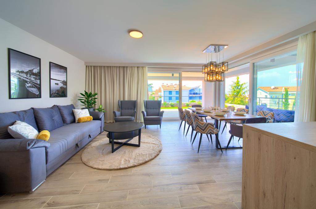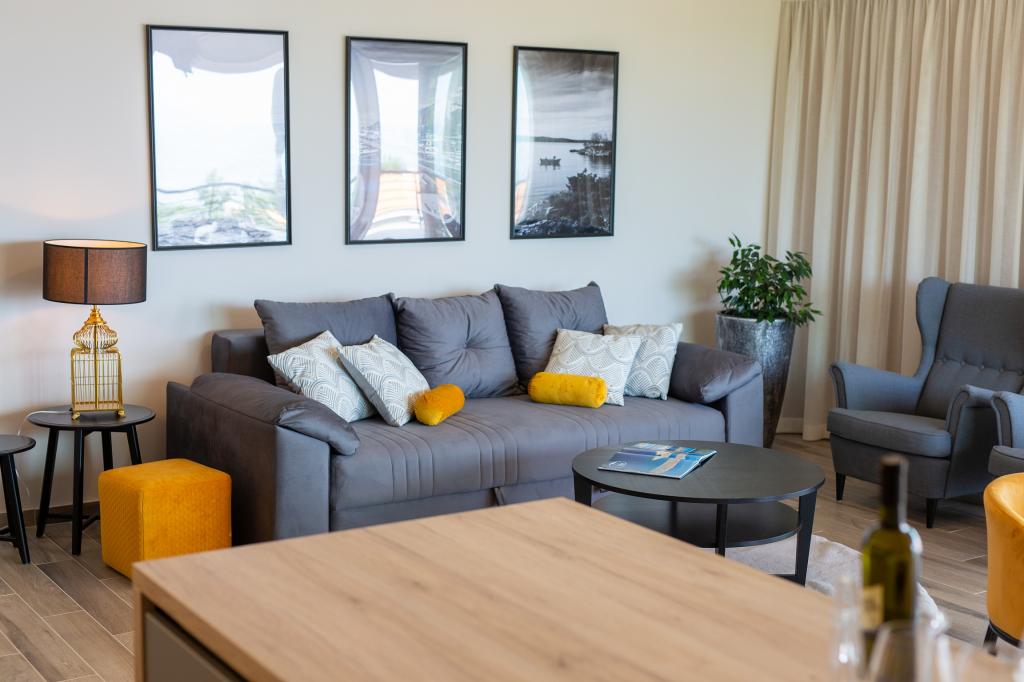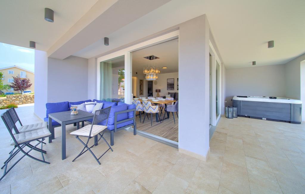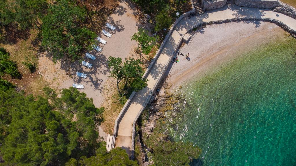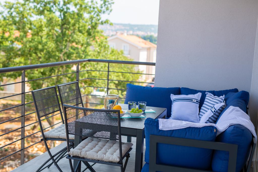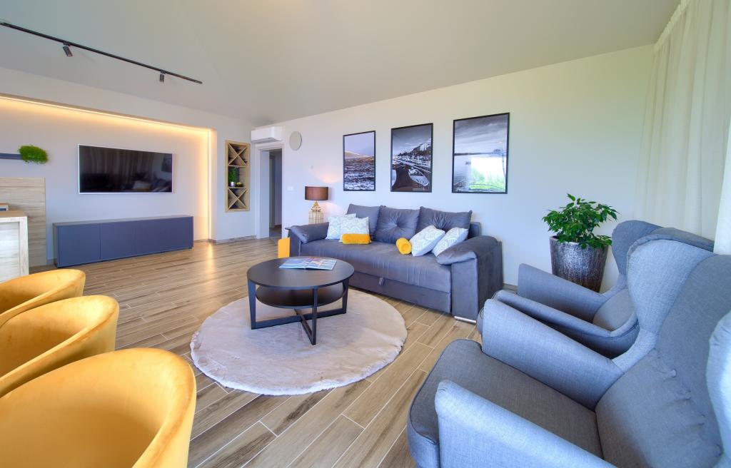 Vista Deluxe Apartments se nachází na krásném místě, jen pár kroků od oblázkové pláže a je obklopen svěžím dubovým lesem. S pláží na dosah ruky budete pravděpodobně trávit slunečné dny a užívat si křišťálově čistého moře, ale pro ty, kteří dávají přednost svému soukromí, tento krásný prázdninový dům nabízí soukromou venkovní vířivku na každém balkonu a jako další potěšení nádherný výhled na moře relaxace ve vířivce na balkoně. Každý apartmán má moderní otevřenou kuchyň s jídelním koutem a obývací pokoj, který se otevírá na prostorný balkon s lehátky, vířivkou a otevřeným jídelním koutem. Každý apartmán má tři pěkně zařízené ložnice, všechny s vlastní koupelnou.