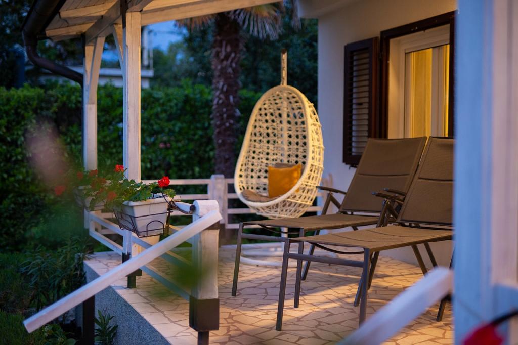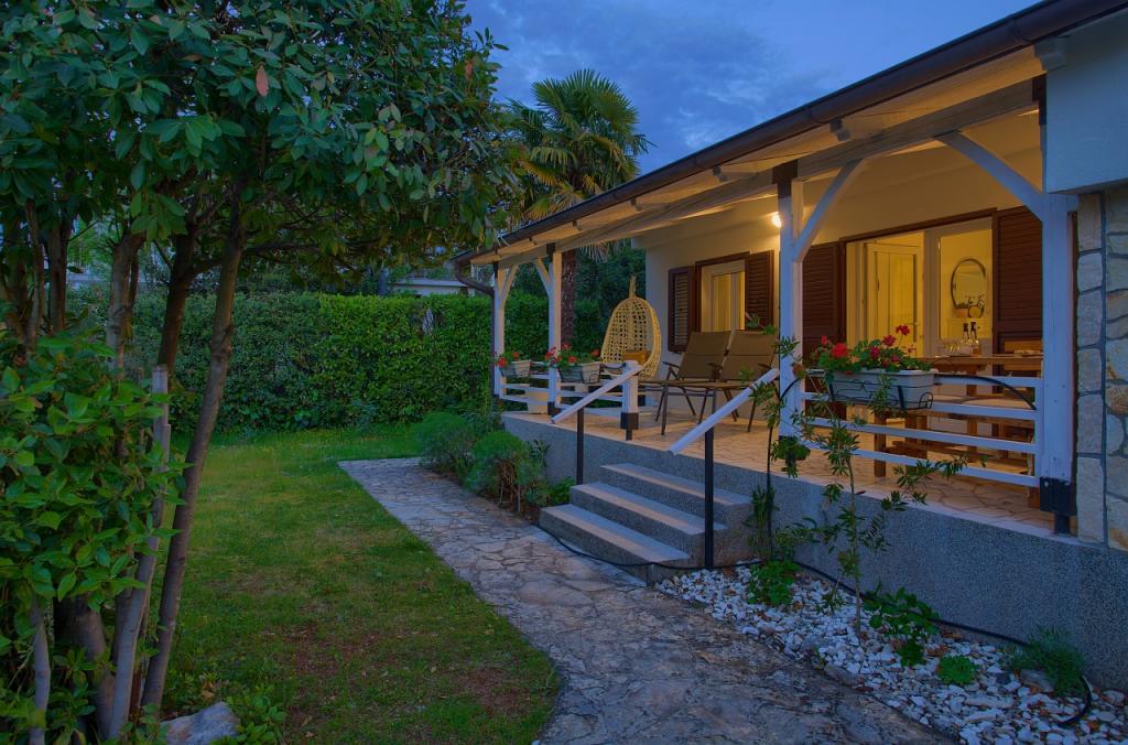 Chata "Mala kuća" se nachází v Malinsce na ostrově Krk, druhé řadě od moře v blízkosti pláží Dub (70 m) a Cuklićevo (70 m). Je obklopen krásnou zahradou se středomořskými rostlinami. Na zahradě jsou dvě zahradní lehátka. Dům má dvě terasy (kryté, před domem 21,39 m2 a ve dvoře, zahrada s grilem a zahradní sprchou). K dispozici je také garáž o rozloze 19,64 m2 se zábavním zařízením (šipky, kulečník) a pračkou a sušičkou.