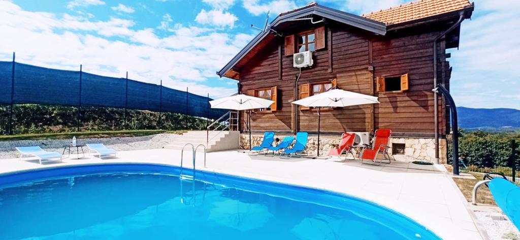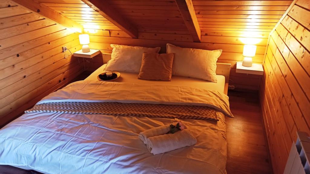 Holiday Home King's Lodge je dřevěný dubový dům nacházející se v Hrvatsko Zagorje s výhledem na horu Ivanščica ... K dispozici: - 3 samostatné ložnice - 2,5 koupelny - prostorný obývací pokoj s krbem - sauna - gril s krytou terasou - místnost pro socializace a hraní (šipky, kulečník, PS, deskové hry...) - venkovní ohniště - dětské hřiště - dětský koutek a čtenářský koutek