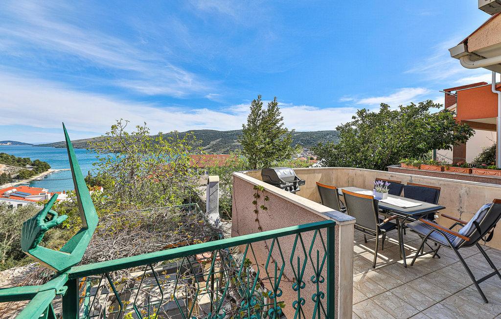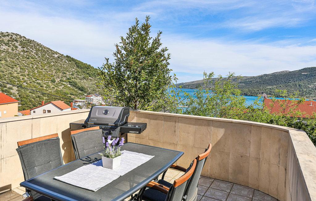Užijte si plně zařízené apartmány s výhledem na moře, 200 metrů nad oblázkovou pláží na ideálním místě pro objevování krás Dalmácie, mezi Splitem a Šibenikem.