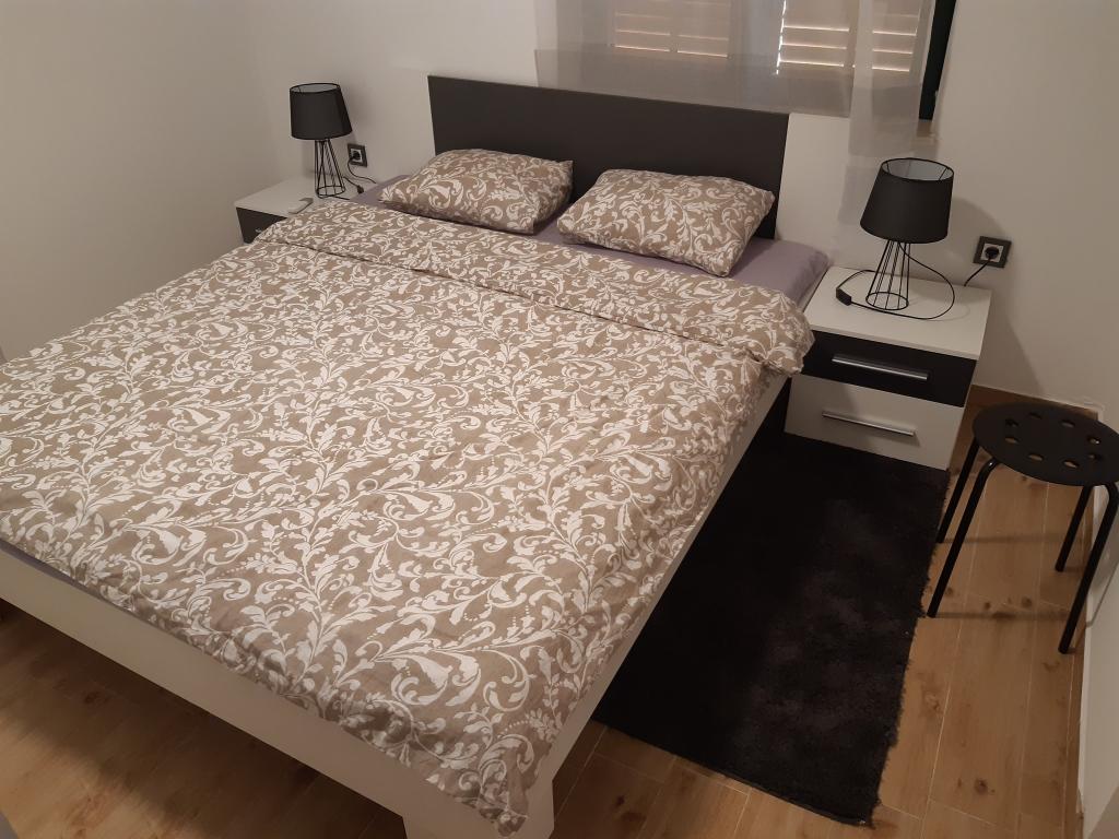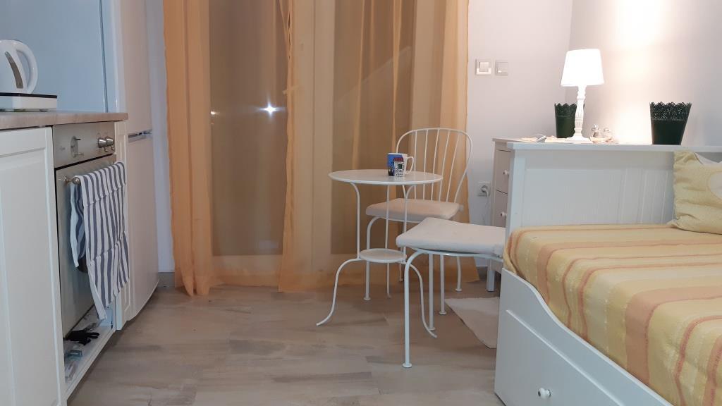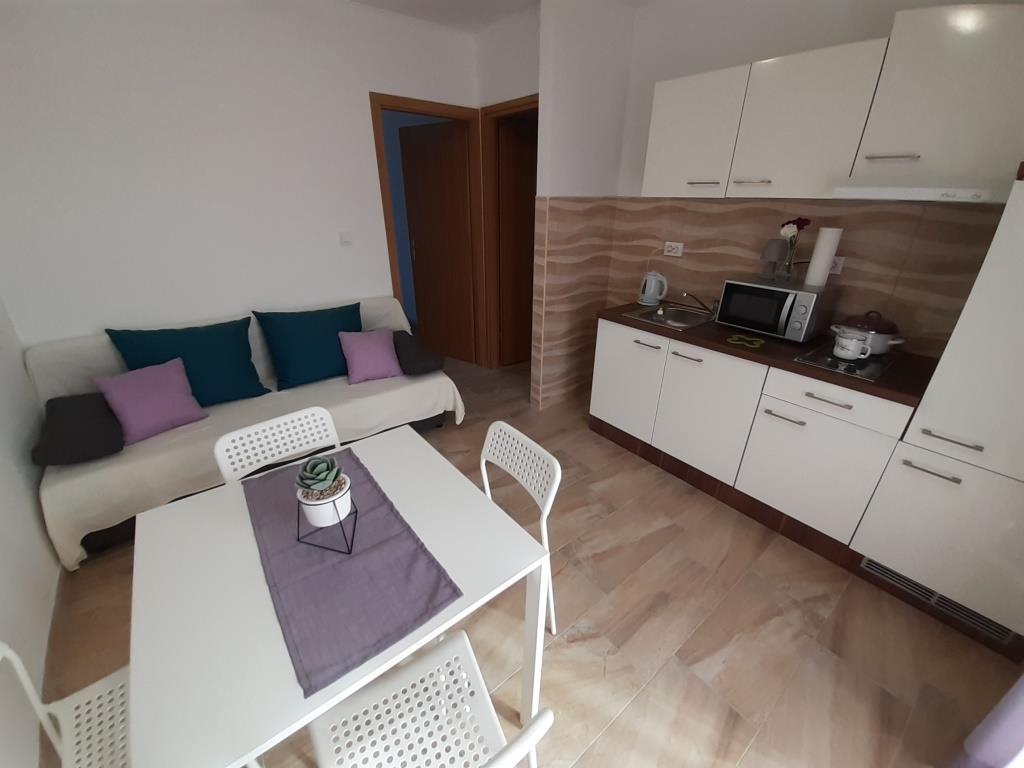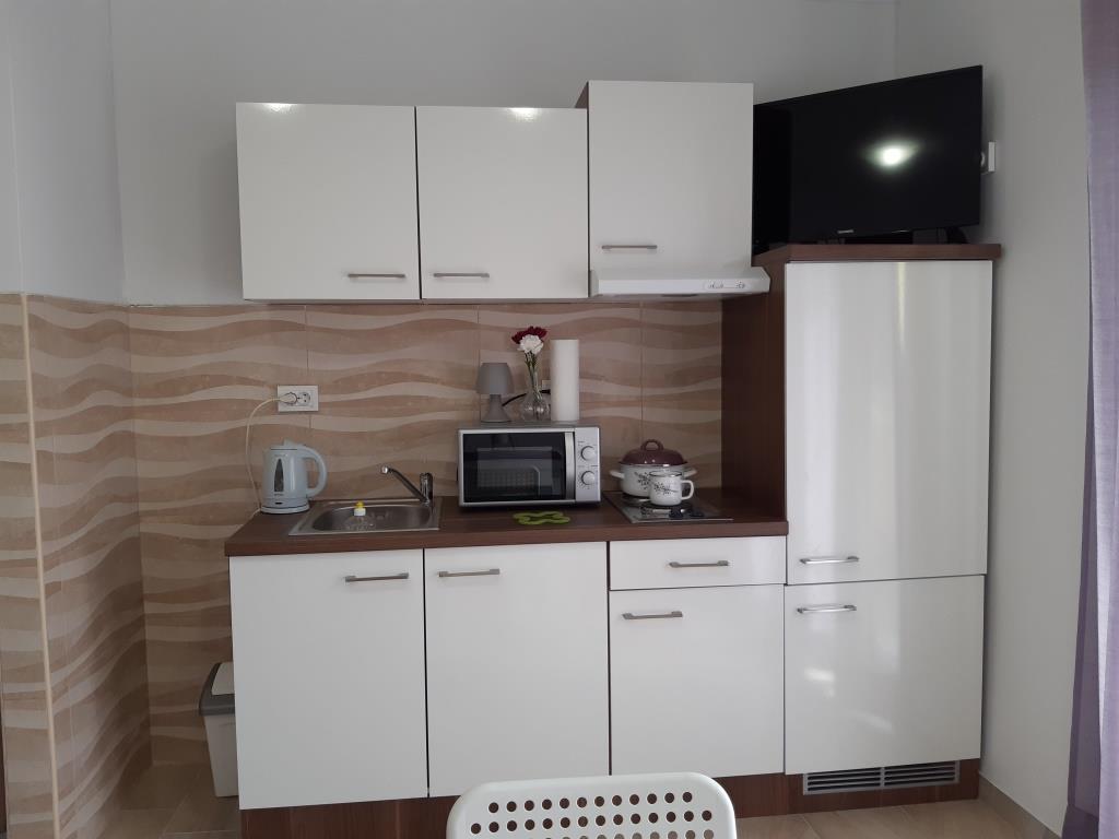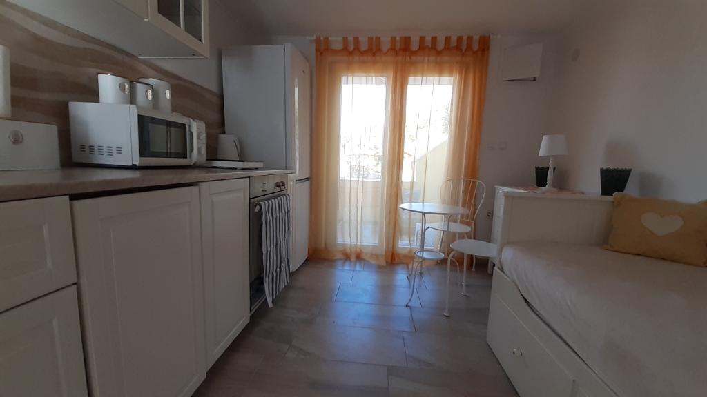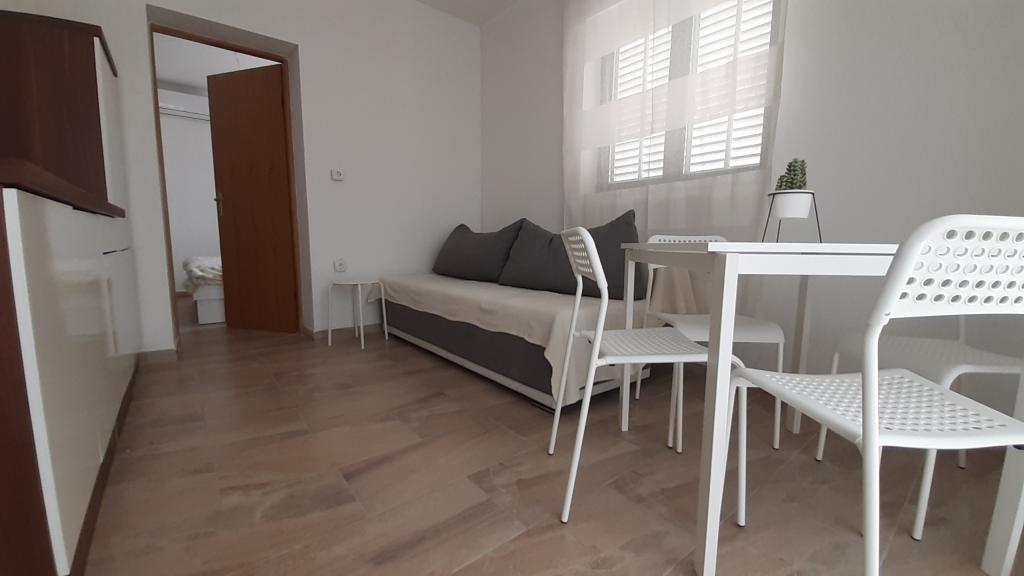 Apartmány se nacházejí v samostatné budově zrekonstruované v roce 2020, která má pouze 4 bytové jednotky - každá garsoniéra pro 2 až 2 osoby, v klidné oblasti obklopené dalmatskou zelení. Byt se skládá z 1 ložnice (manželská postel 160x200), obývacího pokoje (s rozkládacím lůžkem 140x200) s kuchyní (vybavena lednicí, varnou deskou, mikrovlnnou troubou a sporákem a dalším potřebným nádobím), koupelny se sprchou a pračkou. Apartmán je klimatizovaný a nabízí bezplatné Wi-Fi. Balkon je skvělý pro ranní kávu s vycházejícím sluncem nebo večer se sklenkou domácího vína a světlem mořského zálivu. Ve dvoře je možné posedět ve stínu olivovníků nebo slunečníků obklopených olivovníky, fíkovníky a další nativní dalmatské zeleně. Parkování je zajištěno ve dvoře. Ubytování se nachází v blízkosti centra města (5) s obchody, poštou, pekárnou a lékárnou, ambulancí a stomatologickými ambulancemi a restauracemi a kavárnami, v blízkosti starého centra s historickou věží symbolem tradice (10)