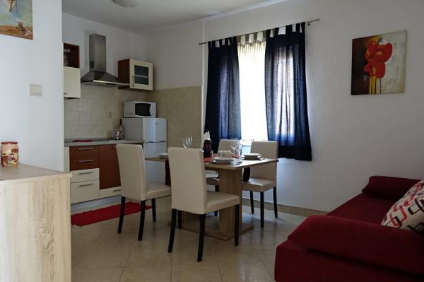Pěkně zařízené apartmány v klidné lokalitě Poljica, 4 km od centra Marina (Trogirská riviéra). Dům se nachází v první řadě k moři. V bezprostřední blízkosti domu je dětské hřiště. Nejbližší pláž je vzdálená 3 minuty chůze. Před domem je vlastní parkovací místo. Poljica se nachází 10 km od Trogir, 38 km od Splitu, 50 km od Šibeniku a 65 km od národního parku Krka. Letiště Split je vzdáleno 17 km.