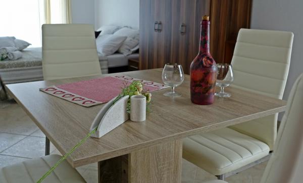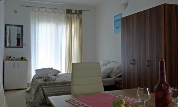 Naše studio bylo skvělé: teplá voda, velmi dobře vybavená kuchyň, klimatizace, vše nové. Komfortní postel, skvělé místo pro relaxaci na terase - večer můžete snídat nebo relaxovat se sklenkou vína. Parkování zajištěno. Host je nádherný, velmi vstřícný, srdečný a pohostinný. Samotné místo je klidné, plné kouzla. Krásné pláže, potěšení z jaderského moře. Doporučujeme! Určitě se vrátíme k panu Robertu. Cena za studio velmi spravedlivé.