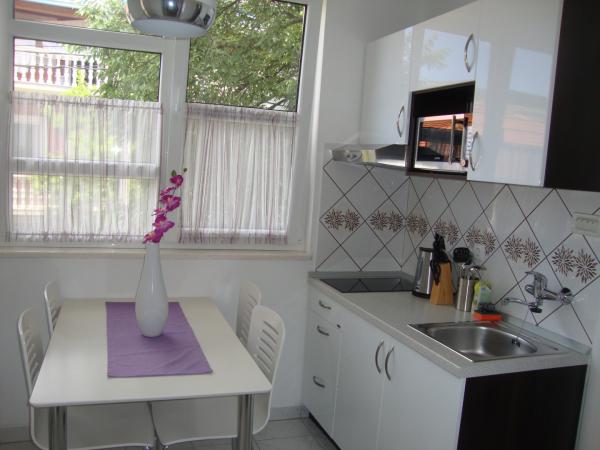 Super zařízené studio, má vše, co opravdu potřebujete pro perfektní dovolenou s rodinou. Krásná terasa, vždy ve stínu. Majitelé jsou vždy k dispozici, ale opravdu se cítím příjemnou rodinnou atmosférou. Oni nám všem nabídl, takže jsme se cítil pohodlně a super maximum. Připravil nám savrešen oběd (opět velké díky za to). Vše, co na obrázcích, jste vlastníkem dělal úsilí a detaily všichni objasio. Velmi čistý a dobře udržovaný, čistota je 10 :) Service fantastické host. Rozhodně doporučujeme pro rodiny s dětmi. Všechno je blízko, město, pláž, dětské hřiště. A co je nejdůležitější, žádné davy na pláži, takže není tlačí. Ceny potravin a nápojů ve městě, na pláži jsou docela reálné, a nikoli oteklé. Marina je perfektní dovolenou pro lidi, kteří potřebují klid a příjemnou rodinnou dovolenou. Blízkost velkých měst, ale může být snadno a hodně vidět.