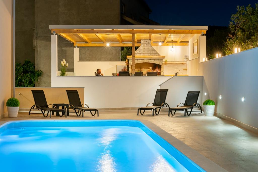Pravděpodobně jedno z nejlepších ubytování v Chorvatsku. Všechno je velmi dobře udržované, plně vybavené, moderní a klimatizované. U bazénu je terasa s plně vybaveným grilem. U bazénu jsou lehátka, sprcha a toaleta. Výhled z vily je fantastický. Majitelka Marina je úžasná a vřelá osoba. Byla velmi ochotná a dokonce nás přivítala místním masem, sýrem a chlebem. Pláž (oblázková) je doslova dvě minuty odtud. Vřele doporučuji! Rádi se vrátíme.