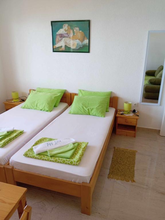 Idylické ubytování na ostrově Cres. Dům Julia, který se nachází v klidném městečku Martinšćica, nabízí idylickou dovolenou v bezprostřední blízkosti krásné pláže. Martinšćica jako malebná rybářská vesnice na ostrově Cres nabízí klidnou dovolenou daleko od hektického každodenního života a stresu. K dispozici máte: garsonku pro 4 osoby, garsonku pro tři osoby, dvě garsonky pro dvě osoby a dva pokoje (Julia2 a Julia4) s možností využití kuchyně. Veškeré ubytovací zařízení umožňuje pohodlný a relaxační pobyt. Domácí mazlíčci jsou vítáni a hosté mají k dispozici připojení k internetu a parkování. K dispozici je také venkovní gril, kde si můžete vychutnat přípravu lahodných jídel pod širým nebem.