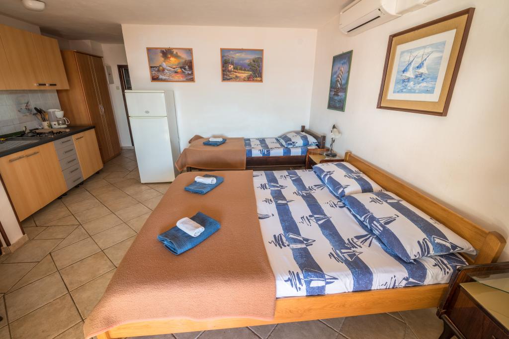 Město Miholašćica má své kořeny až do starověkých římských dob. Nachází se na nejklidnější části pobřeží Cresu, vedle prostorné zátoky otevřené na jihozápad. Krásně upravené městečko Miholašćica a sousední městečko Martinšćica se spoustou středomořské vegetace jsou orientovány na rodinnou a kempingovou turistiku. Dnes je Miholašćica turistickým místem, kde se s výhledem na ostrov Žeča vyhnete davům a najdete svou dovolenou v klidném prostředí. Kromě krásných pláží nabízí nedotčená příroda skvělé možnosti pro kvalitní a aktivní pobyt a dovolenou. Apartmány Villa Goga se nacházejí v samém centru města Miholašćica, pouhých 5 minut chůze od pláže. Ve čtvrti 300 m nebo 10 minut chůze jsou 2 restaurace, supermarket a turistická kancelář. Oblázková přírodní pláž a čisté moře poskytují nezapomenutelný zážitek pro vaše nejmenší a nenahraditelnou dovolenou pro dospělé. Přímo na pláži je bar, kde se můžete zchladit chlazeným nápojem nebo pobavit děti zmrzlinou z široké nabídky.