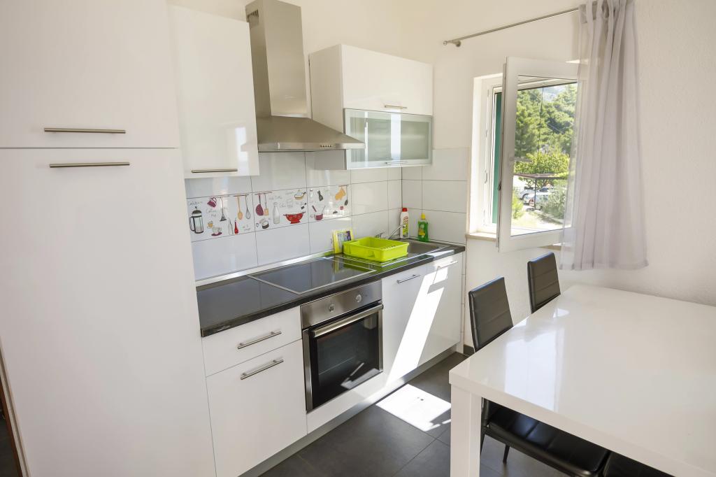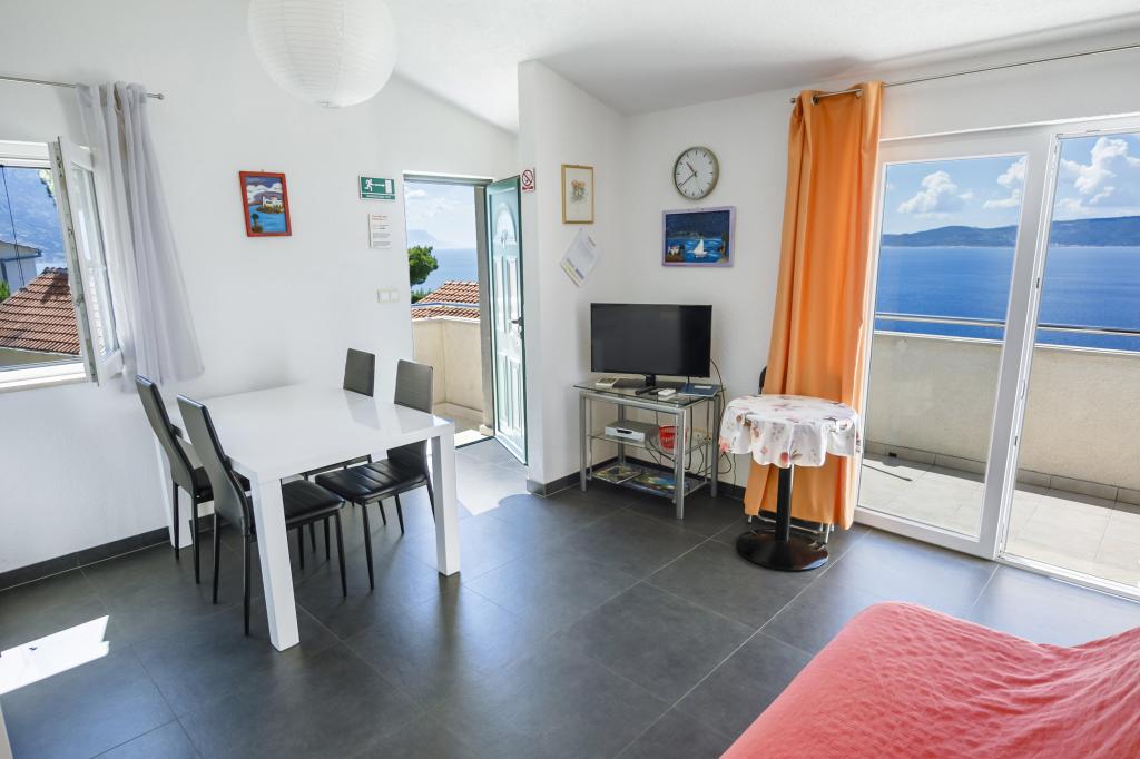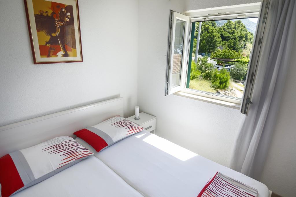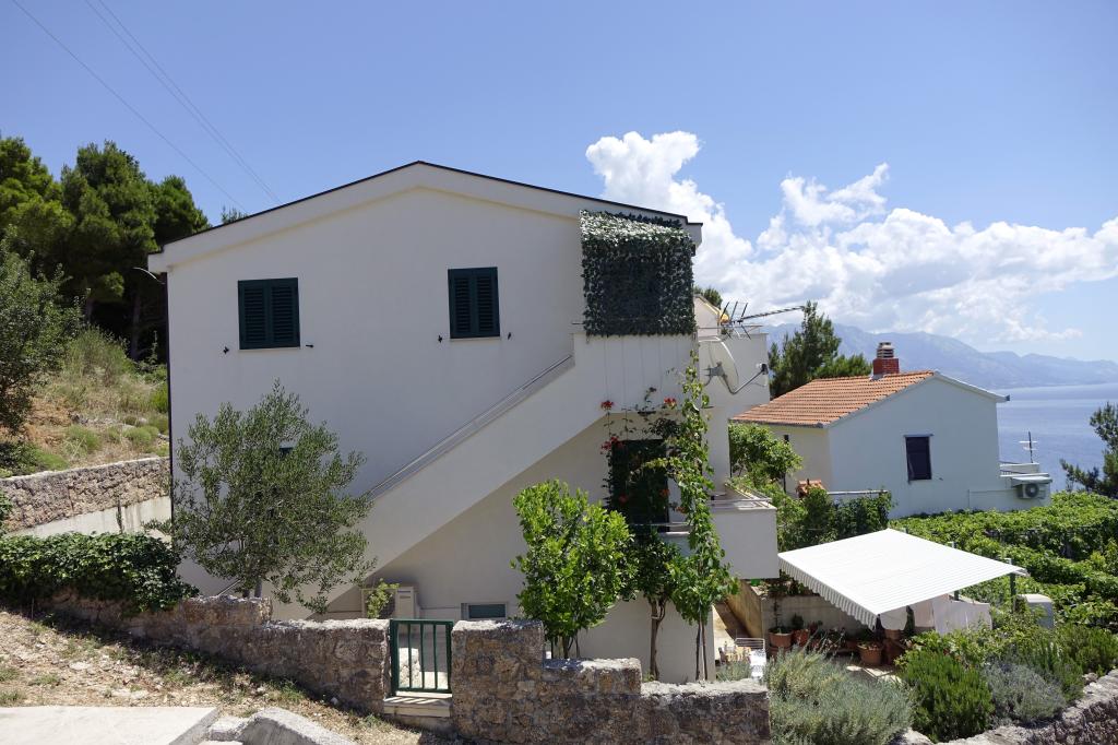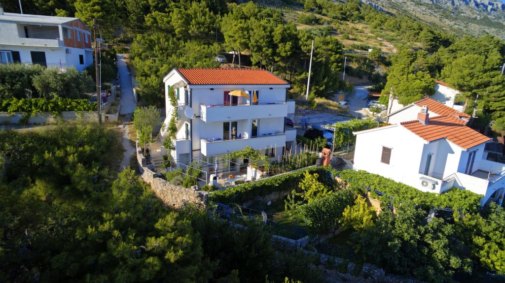 Dům se 4 nových bytů s výhledem na moře a ostrov Brač v malé klidné vesničce Marušići která je jednou z nejkrásnějších pláží na Blízkém Jadranu. Apartmány jsou ideální pro rodiny s dětmi a poskytuje veškeré pohodlí (klimatizace, flat rate internet a TV se satelitním příjmem). Každý apartmán má moderní vybavení a má ložnici, Luxusně zařízený koupelnu a kuchyň, jídelna a obývací pokoj v oblasti, kde je rozkládací pohovka, která převádí do postele pro dvě osoby.