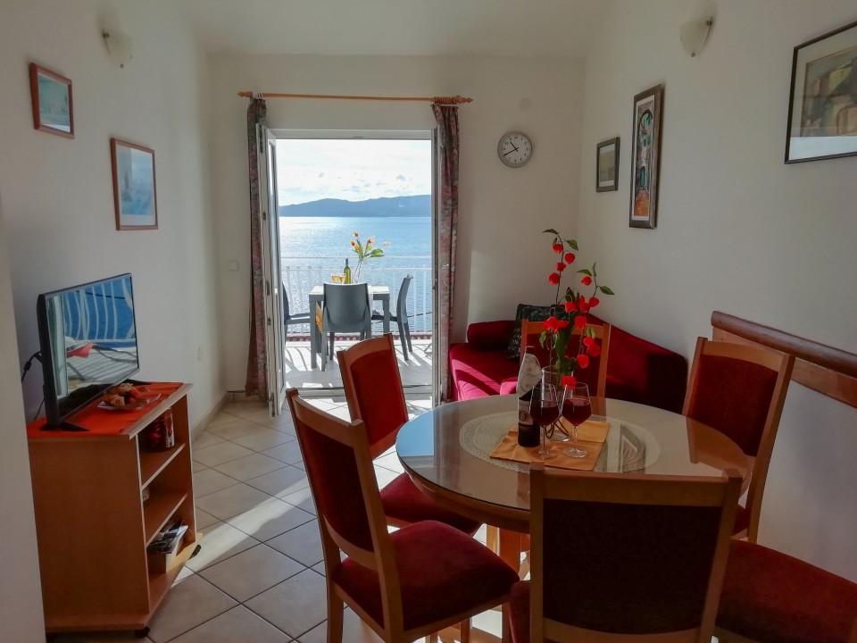 Fantastický prázdninový byt s mnoha výhodami: Byt je prostorný, moderní a esteticky velmi atraktivně zařízený, samozřejmě také s W-LAN a klimatizací. Z balkonu máte fantastický výhled na moře a hory - kombinace, kterou může nabídnout pouze Chorvatsko! Byt se nachází v malé vesničce Marušići nedaleko "pirátského města" Omiš, ve velmi klidné lokalitě a zároveň snadno dostupný z pobřežní silnice. Idylická pláž, kterou navštěvují převážně místní, je odtud jen pár minut. Na kajaku pronajímatele můžete pádlovat podél pobřeží. Jadranka a Doni jsou velmi přátelští a zdvořilí majitelé s radami a jednáním!
