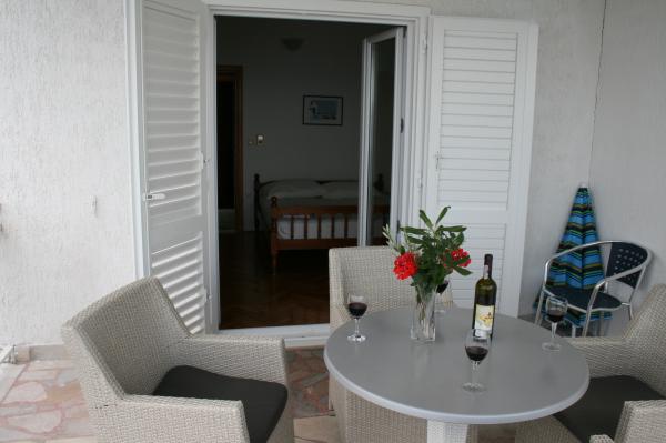 Villa Jadranka se nachází přímo nad pláží, a všechny apartmány mají velkou terasu s krásným panoramatickým výhledem na moře. Každý z nich má moderní kuchyň, bezplatné Wi-Fi internet, satelitní TV, klimatizace, sprcha, ručníky a ložní prádlo, obývací pokoj s rozkládací pohovkou a jídelním koutem. Jako náš host, pomocí krásný dům na pláži (gril, dvě lehátka na apartmán až do konce svého pobytu ve vile, slunečníky, plážové sprchy n) a parkoviště s video dohledem a vše zdarma !! Na pláž se dostanete po schodech přímo z vily.