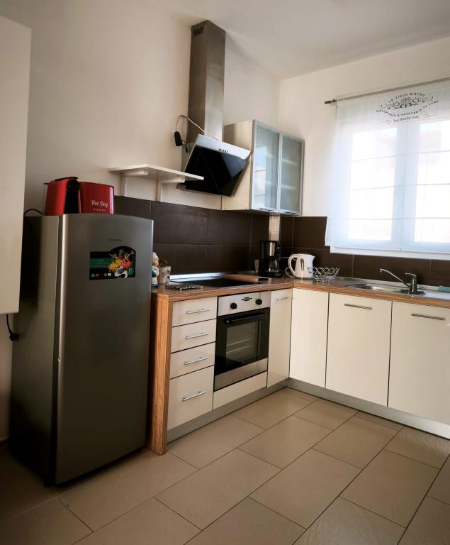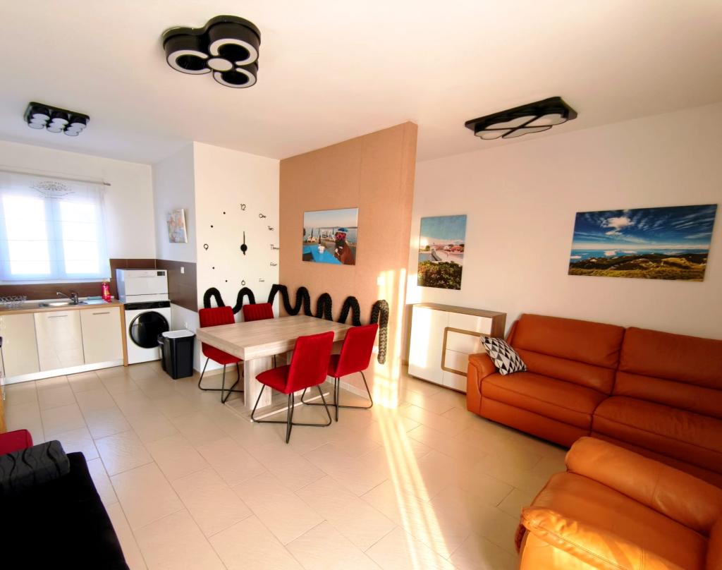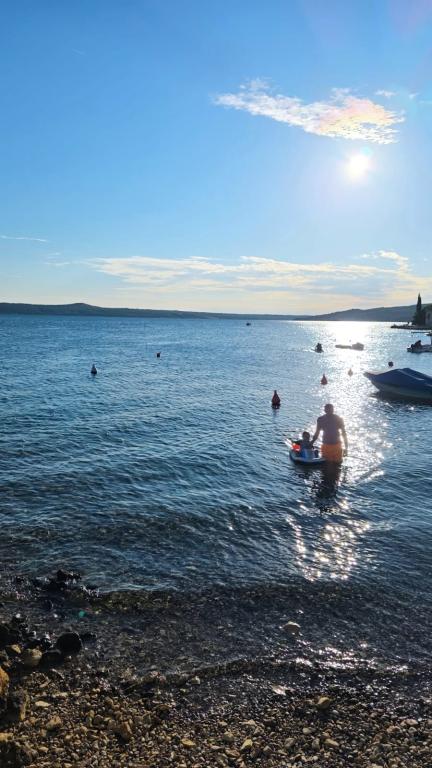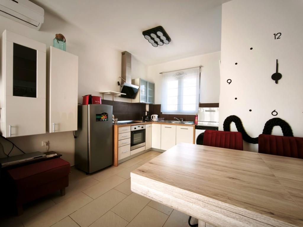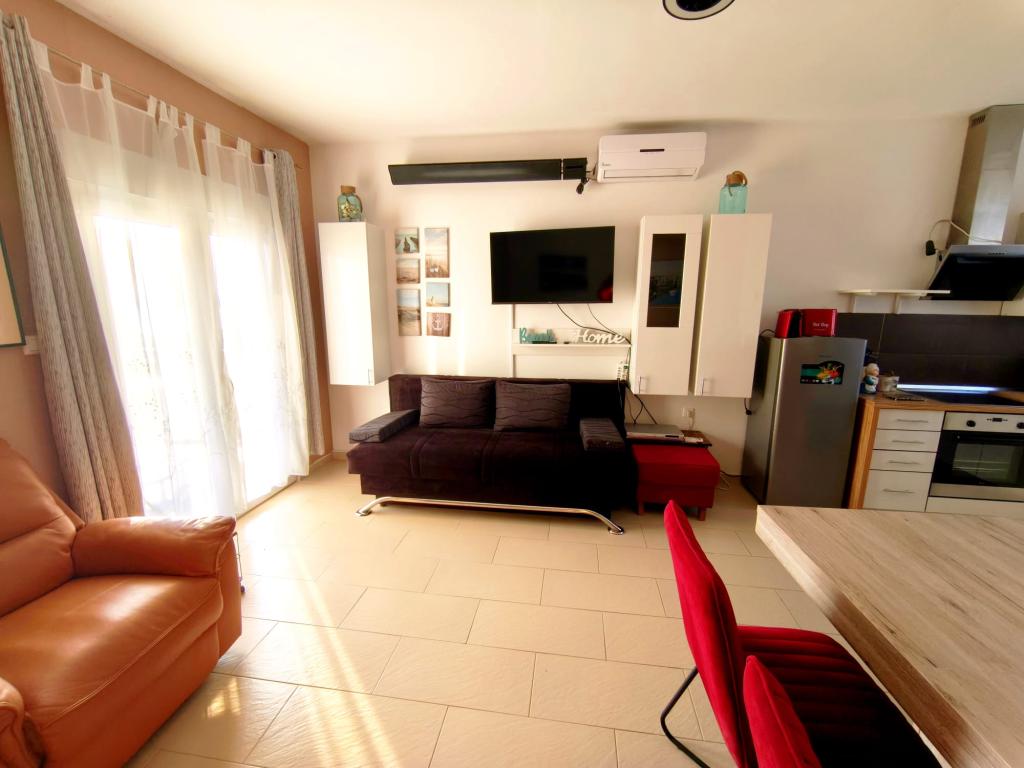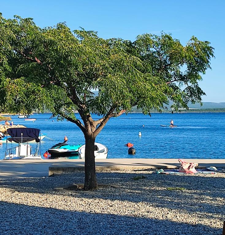 Plně zařízený apartmán se nachází v přízemí. Skládá se z jedné ložnice s manželskou postelí, kuchyně s jídelnou, jedné toalety a obývacího pokoje se dvěma pohovkami, z nichž jednu lze rozložit jako přistýlku. Za poplatek je možné se ubytovat s domácími mazlíčky a máme k dispozici kotviště/bóji, které mohou naši hosté využít k ukotvení své menší lodi.