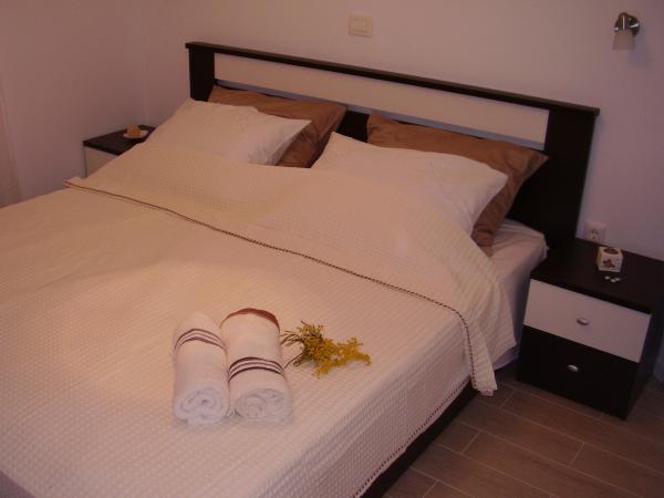 Bydleli jsme jen jednu noc v krásných apartmánech Barba. Ale my couldnt vybrat lepší místo k pobytu. Apartmány se nachází v klidném koutě Maslenica s krásným výhledem na oceán. Za pouhých pár minut jsme byli na pláži. Apartmány jsou nové se všemi kuchyňské zařízení. Majitelé domů jsou milí lidé. Vrátíme se pro jistotu ... :)