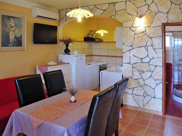 Velmi dobré podmínky bydlení a jen majitelé rozkoš! Povídali jsme si v polštině. Hostitel se podávají úžasné grilovaná jídla v spravedlivými částkami za slušnou cenu (kdo nechce, nemusí používat), lahodné likéry a domácí víno a kdykoliv pomoci. Žena v domácnosti dělá chutné pizzy - můžete být v pokušení .. Z terasy je krásný výhled na morze.Okolica spokojna- několik malých obchodů a 2-3 malých hospůdek. Pro větší akce je třeba do Zadaru. Doporučujeme rafting !!! To bude něco pamatovat.