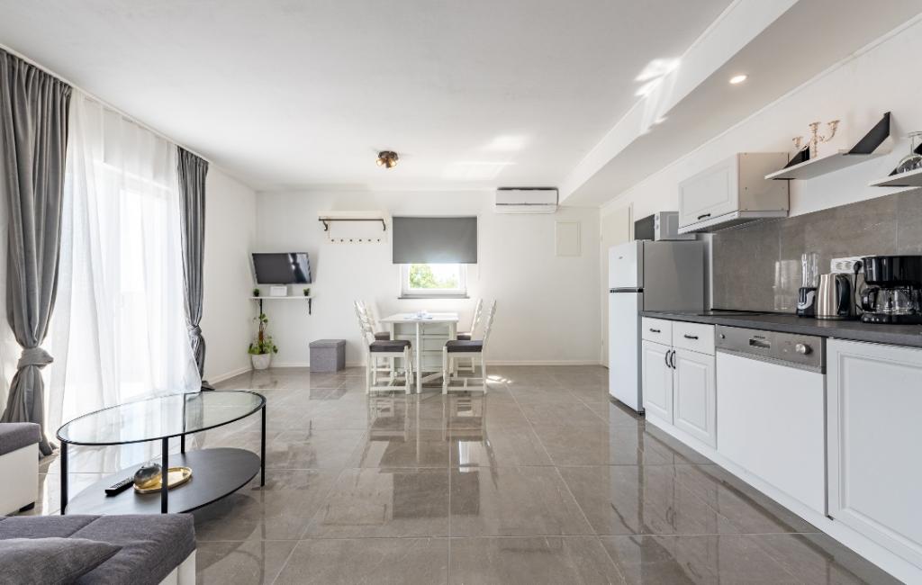Moderní a plně vybavené apartmány v klidné části Maslenice. Zařízení se nachází v centru, 250 m chůze od obchodu, 900 m chůze od hlavní pláže. Cestou na pláž míjíte dětské hřiště, několik obchodů, stánek se zeleninou a ovocem a pekárnu.