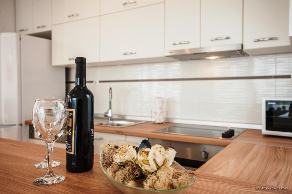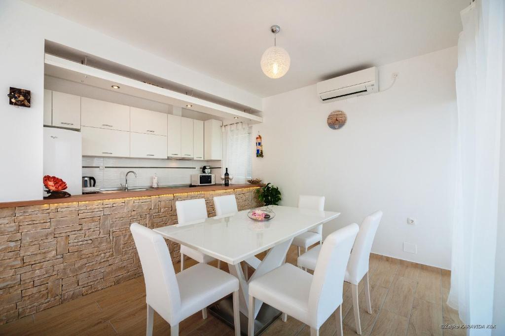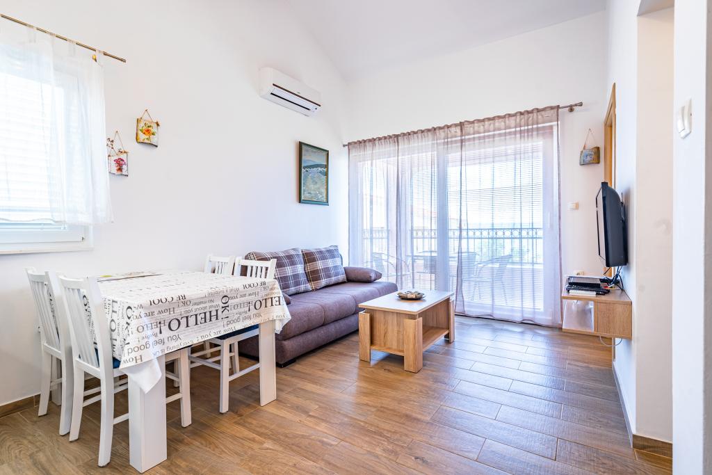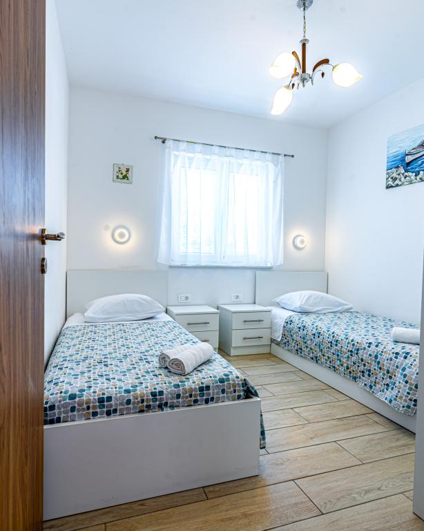 Vítejte v našem krásném domě k pronájmu, který se nachází v klidné a přátelské čtvrti. Tato oáza pohodlí vám nabízí vše, co potřebujete pro odpočinkovou a nezapomenutelnou dovolenou. Náš dům se nachází jen 5 minut chůze od moře, což vám umožňuje snadný přístup ke krásným plážím a křišťálově čistému Jaderskému moři. Každý apartmán má terasu s výhledem na moře, což vytváří ideální prostředí pro ranní kávu nebo romantickou večeři při západu slunce. Naše apartmány jsou moderně a moderně vybaveny a poskytují vám pohodlí a luxus během vašeho pobytu. Užijte si prostorné pokoje, plně vybavenou kuchyň a elegantní design interiéru, který si vás získá. Bez ohledu na to, zda jste pár hledající romantický útěk nebo rodina hledající odpočinkovou dovolenou, náš dům je pro vás ideálním místem. Čekáme na váš příjezd a těšíme se, že vám poskytneme neuvěřitelný zážitek z dovolené, na který budete dlouho vzpomínat.