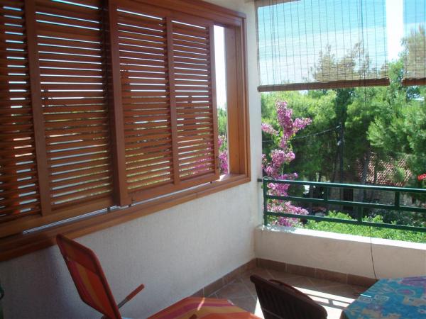 K dispozici jsou dva plně vybavené apartmány se samostatnými vchody. Oba apartmány mají krásnou terasou s výhledem na moře a ostrovy, které se nacházejí v blízkosti pobřeží. Dům je obklopen zelení a má gril, který je k dispozici pro hosty. Apartmány se nacházejí 50 m od pláže, a hosté jsou zdarma k použití kánoe a koše na basketbal, který se nachází ve dvoře. Apartmán má také kryté parkovací místa ve dvoře.