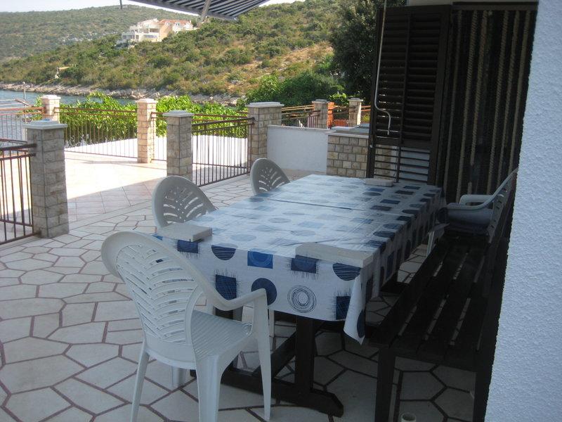 Plně vybavený apartmán v klidné oblasti, který se nachází v první řadě k moři. Byt se nachází v Maslinica, krásném místě na západě ostrova Šolta. Dům se nachází 15 m od moře (udržovaná pláž). Byt je pro 4-6 osob a má samostatný vchod a parkování. Apartmán má dvě ložnice po dvou lůžkách, obývací pokoj pro dvě osoby, kuchyň, dvě koupelny a velkou terasu s výhledem na moře a sedm ostrovů. Máme TV, satelit, WIFI, dvě klimatizace, pračku, myčku, parkoviště... Máme i gril. Pláž je před domem a pro malé děti je štěrková pláž vzdálená 20-100 metrů.