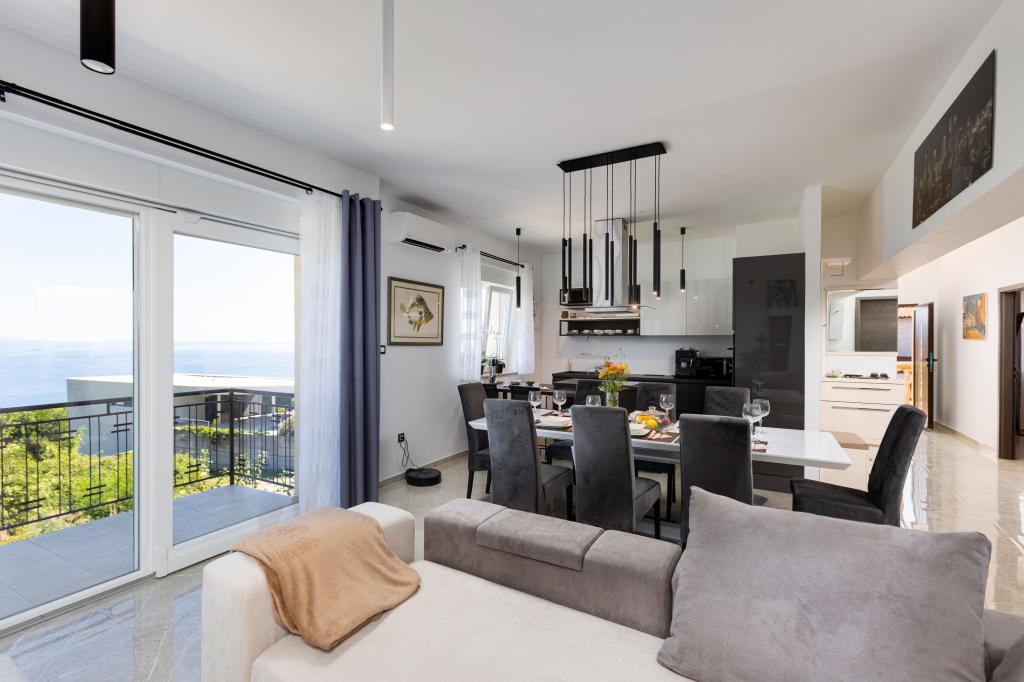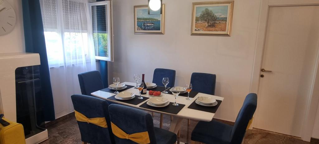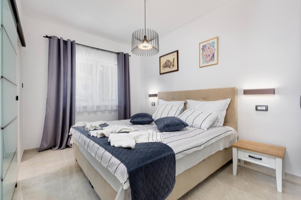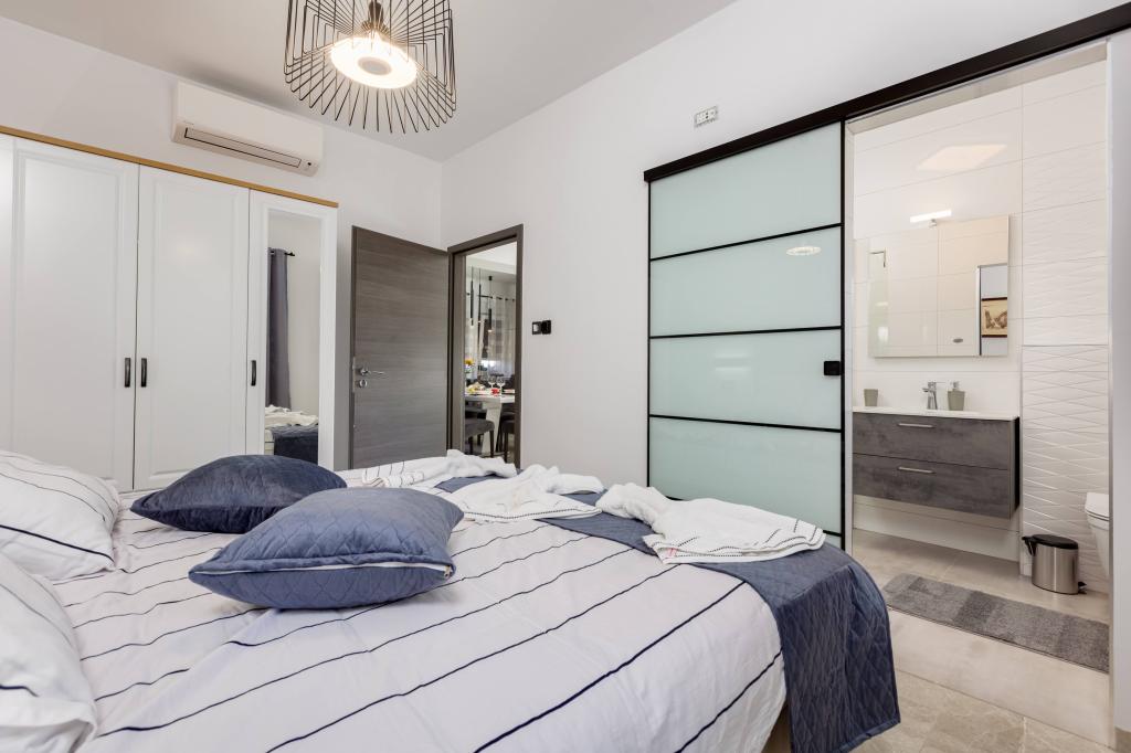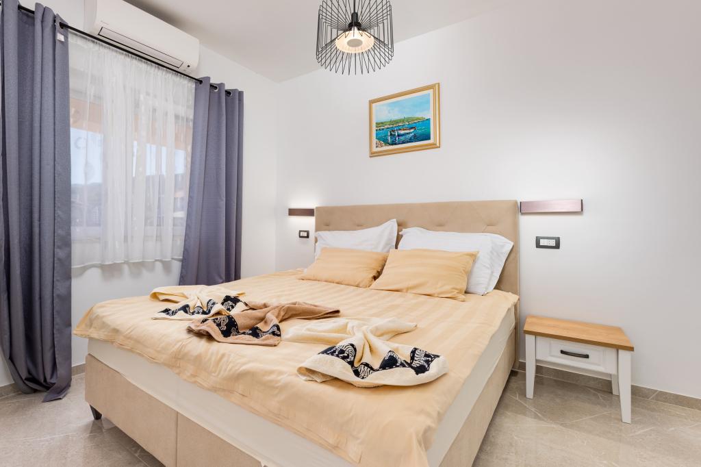 Apartmán First Mary je luxusní a pohodlný apartmán o velikosti 127 m2 pro max. 8 osob A obsahuje kuchyň, obývací pokoj, samostatné WC s pračkou a tři klimatizované pokoje s vlastní koupelnou a TV/SAT. Jídelna se otevírá na prostornou terasu o rozloze 60 m2 a skládá se z plynového grilu, lednice na víno, stolu pro 10 osob a zahradního nábytku pro radost a odpočinek s krásným, uklidňujícím výhledem na moře, stejně jako zařízení pro volný čas, kulečníkový stůl a šipky. Apartmán Second Mary je luxusní a pohodlný apartmán o velikosti 80 m2 pro max. 5 osob s výhledem na moře. Skládá se z obývacího pokoje, kuchyně, samostatné toalety s pračkou a dvou klimatizovaných pokojů s vlastní koupelnou a TV/SAT. K bytu náleží soukromá terasa 25 m2 s plynovým grilem, stolem pro 6 osob, lednicí na víno a také zábavou, stolním fotbalem a šipkami.