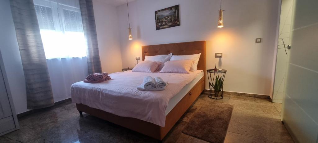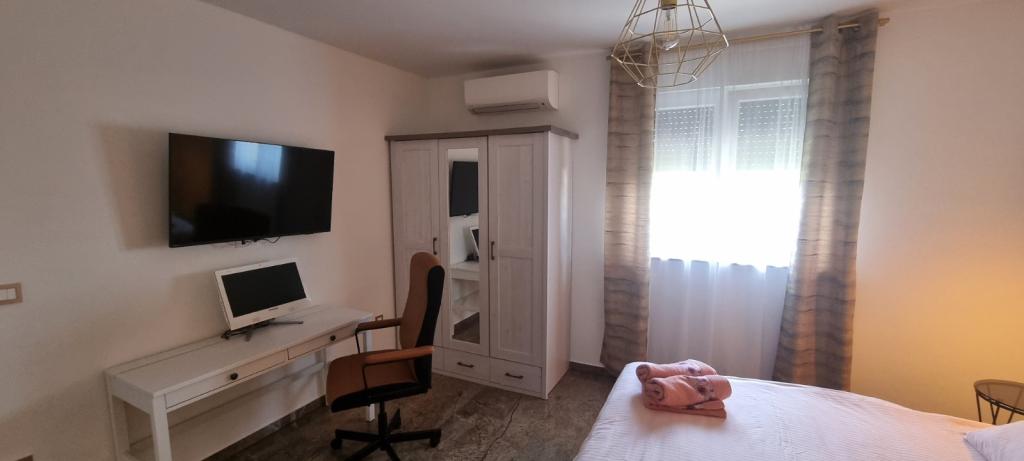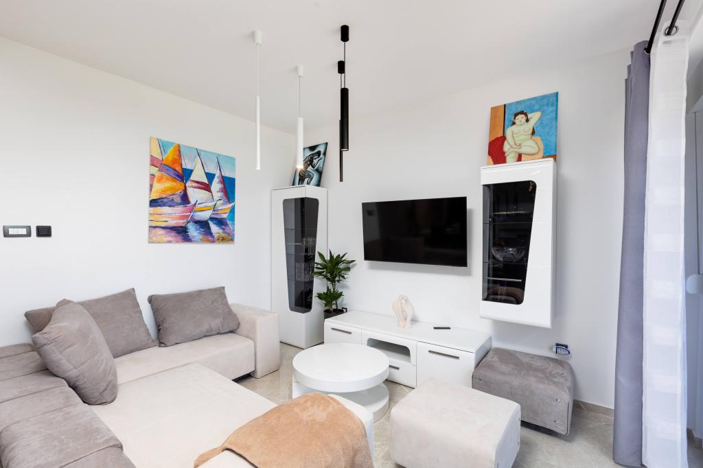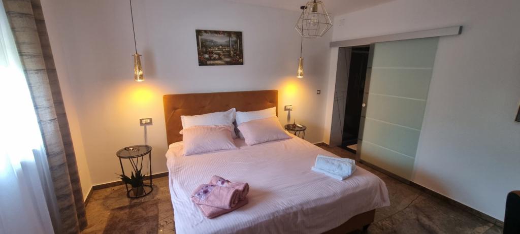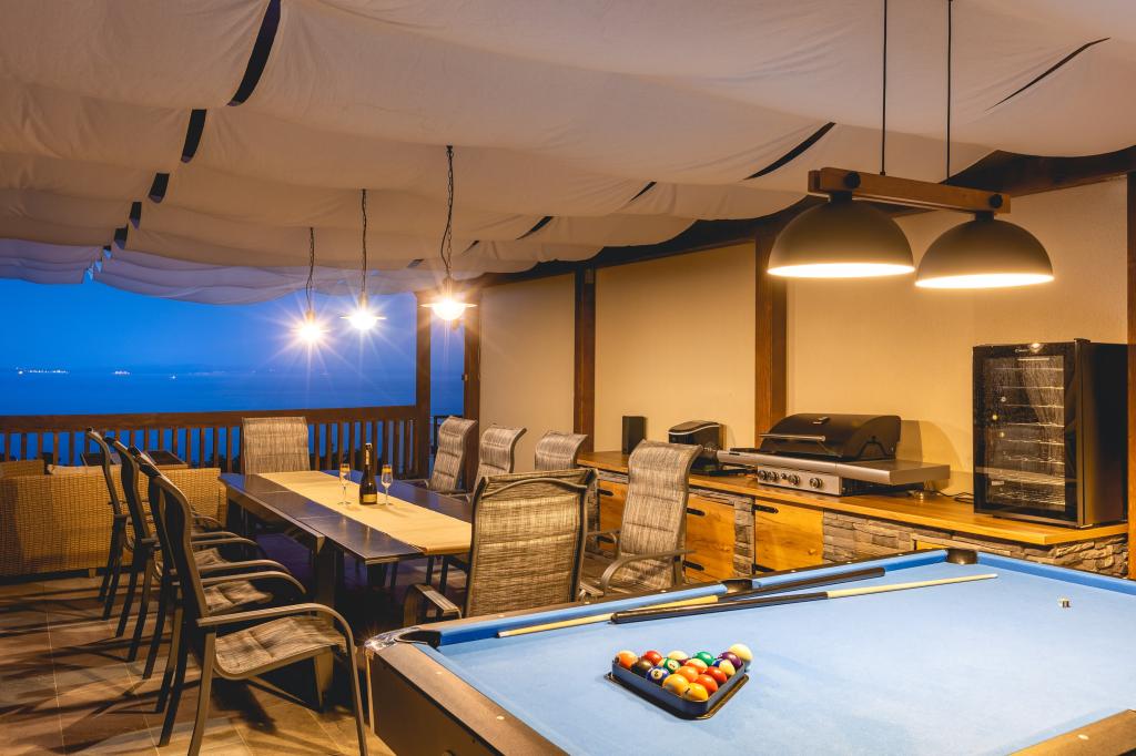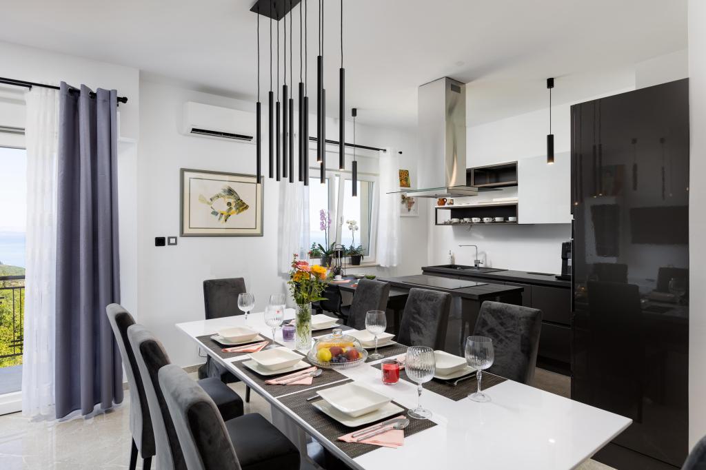 Apartmán First Mary je luxusní a pohodlný apartmán o velikosti 127 m2 pro max. 8 osob A obsahuje kuchyň, obývací pokoj, samostatné WC s pračkou a tři klimatizované pokoje s vlastní koupelnou a TV/SAT. Jídelna se otevírá na prostornou terasu o rozloze 60 m2 a skládá se z plynového grilu, lednice na víno, stolu pro 10 osob a zahradního nábytku pro radost a odpočinek s krásným, uklidňujícím výhledem na moře, stejně jako zařízení pro volný čas, kulečníkový stůl a šipky. Apartmán Second Mary je luxusní a pohodlný apartmán o velikosti 80 m2 pro max. 5 osob s výhledem na moře. Skládá se z obývacího pokoje, kuchyně, samostatné toalety s pračkou a dvou klimatizovaných pokojů s vlastní koupelnou a TV/SAT. K bytu náleží soukromá terasa 25 m2 s plynovým grilem, stolem pro 6 osob, lednicí na víno a také zábavou, stolním fotbalem a šipkami.