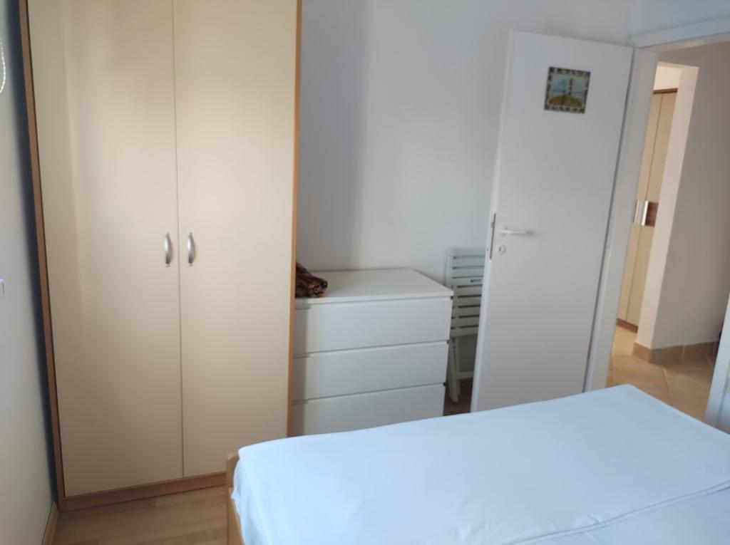 Byt je o velikosti 50m2. Skládá se z jedné ložnice, koupelny, kuchyně propojené s obývacím pokojem, vstupního prostoru a balkonu. Byt se nachází ve druhém patře v domě s několika byty a má parkovací místo před budovou. V apartmánu se mohou ubytovat 2-4 osoby, v ložnici je manželská postel, v obývacím pokoji postel pro dvě dospělé osoby. Celý byt, zejména kuchyně a koupelna, jsou vybaveny všemi potřebnými spotřebiči a předměty pro příjemný pobyt. Cena, za kterou se apartmán pronajímá, zahrnuje: pobyt v apartmánu, veškeré náklady na elektřinu, vodu, klimatizaci, všechny pobytové taxy, ložní prádlo, povlečení, ručníky a veškeré kuchyňské vybavení a nádobí. Jídlo a stravování není zahrnuto v ceně a není zde možnost doplatku za jídlo nebo stravování. Budova se nachází v klidné ulici, bez většího hluku. V blízkosti se nachází několik restaurací, kaváren a cestovních kanceláří, dále supermarket, lékárna, drogerie, pekárna, bankomat. Centrum města je vzdáleno cca 500m, hlavní pláž cca 1000m