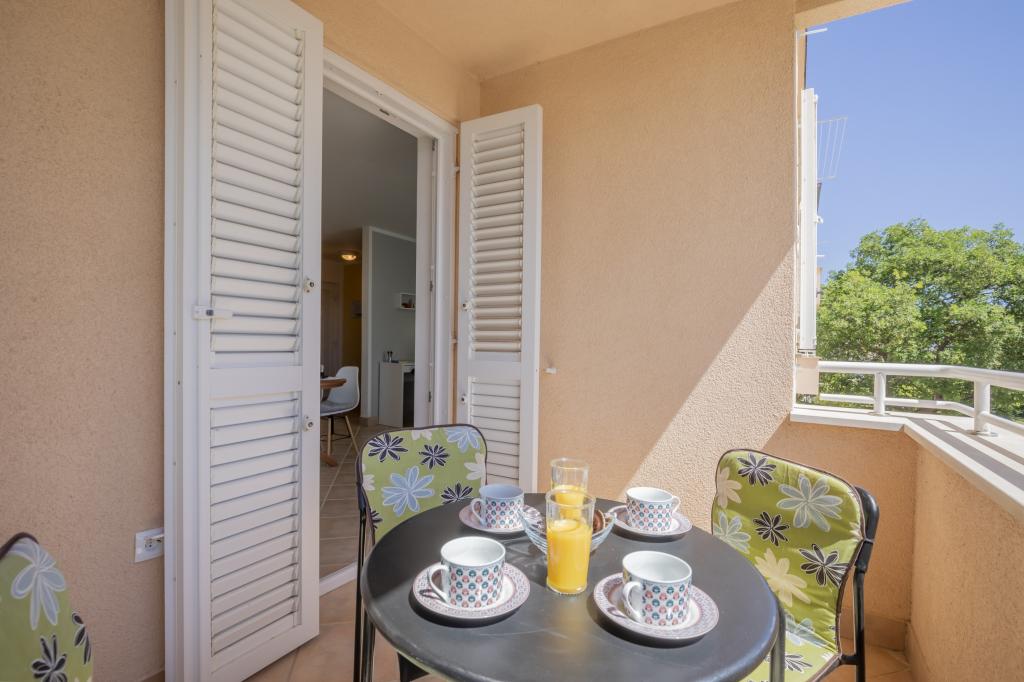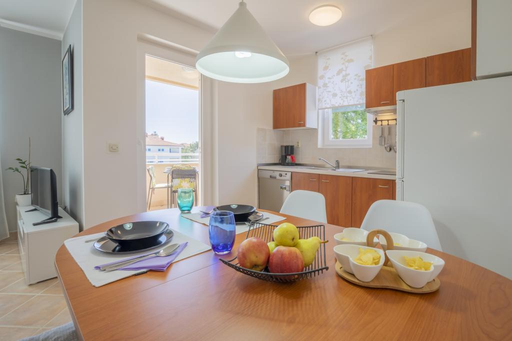 Byt se nachází nedaleko všech zařízení a hlavní promenády a od archeologického naleziště Vižula a písečné pláže Bijeca je vzdálen pouhých 10 minut chůze. Skládá se z chodby, obývacího pokoje, kuchyně s jídelnou, koupelny, ložnice, balkonu a má vlastní parkovací stání. Je vybaven myčkou a pračkou, TV s plochou obrazovkou, mikrovlnnou troubou, fénem, žehličkou, mini trezorem. V ložnici je manželská postel o rozměru 200x160 a v obývacím pokoji rohová sestava s výsuvnou postelí o rozměru 200x140. Dětská postýlka na vyžádání. Ubytování se nachází v apartmánovém domě v klidné části Medulinu. Hostům nabízí příjemný pobyt a možnost věnovat se různým aktivitám v okolí.