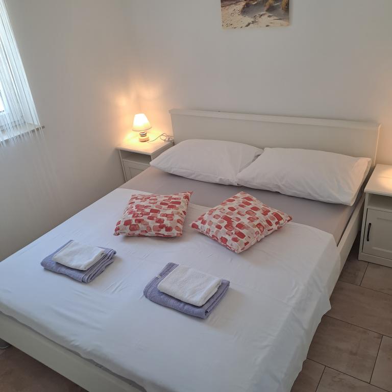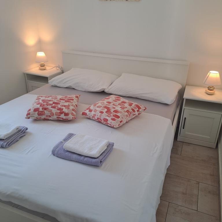 Apartmány Mila-Casa Bianca se nacházejí v klidné části Medulinu, pouhých 900 m od centra, 500 m od nejbližší pláže Bijelica, nabízejí ubytování s bezplatným Wi-Fi, grilem k použití a hlídaným parkovištěm. Objekt se nachází 10 min. chůze k moři (chůze po stezce, která vede borovým lesem) na pláž Bijeca nebo Belvedere a do centra Medulinu pěšky 5-10 minut (ulice jsou jednosměrné, takže to na mapě vypadá dále)...Medulin jako turistická destinace nabízí kromě krásných pláží i další služby pro zábavu a zpestření jako je ranč s koňmi, jízda na kolech a koulích na internetu, sportovní letadlo a koule na internetu okolí, výlety lodí, krásné promenády s veselými akcemi a venkovní konzumací jídla a pití a bohatá nabídka istrijského prosciutta, vína, olivového oleje a všeho bohatství, kterým naše Istrie oplývá...