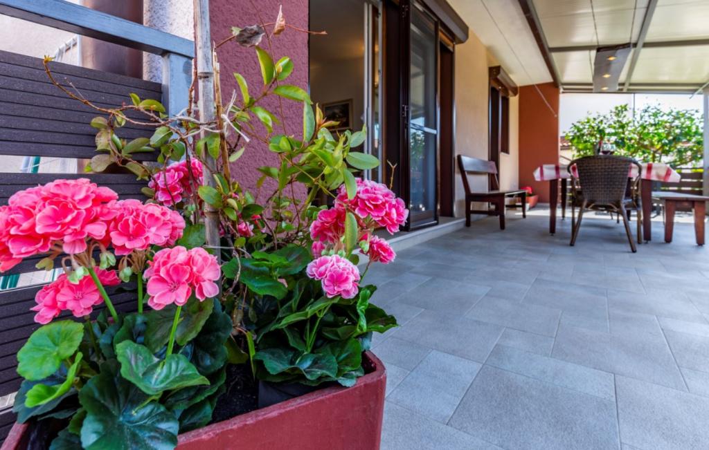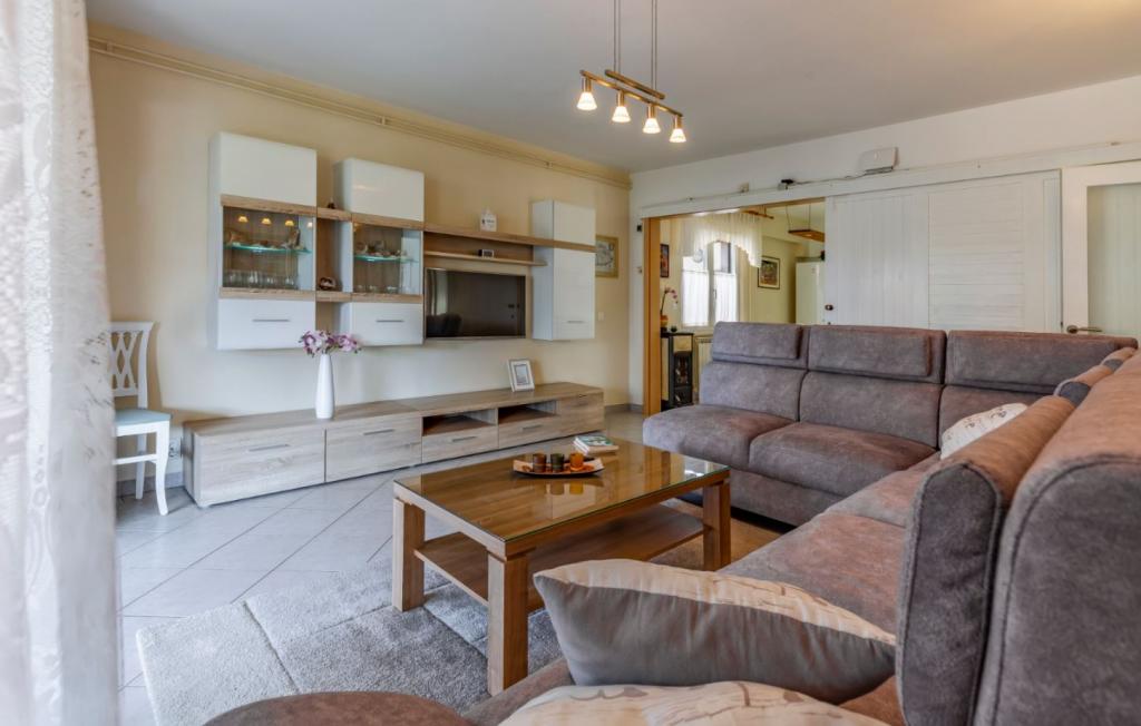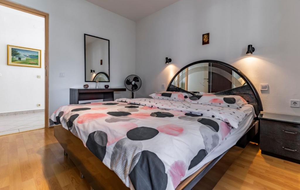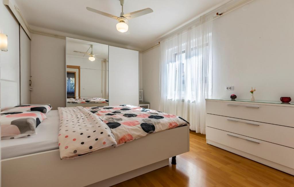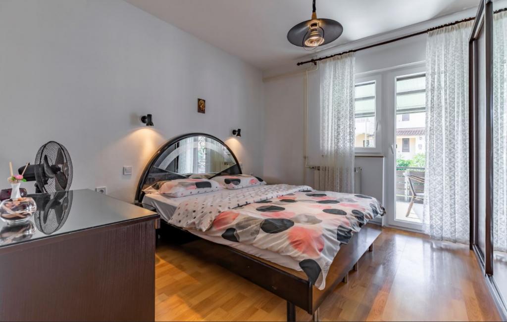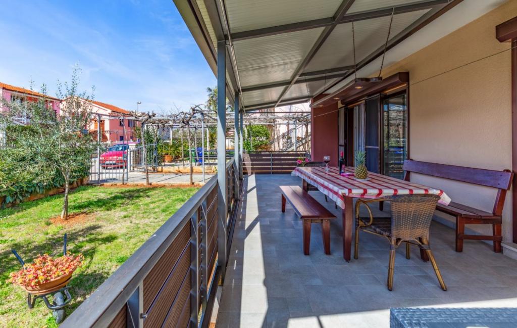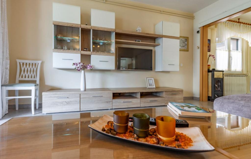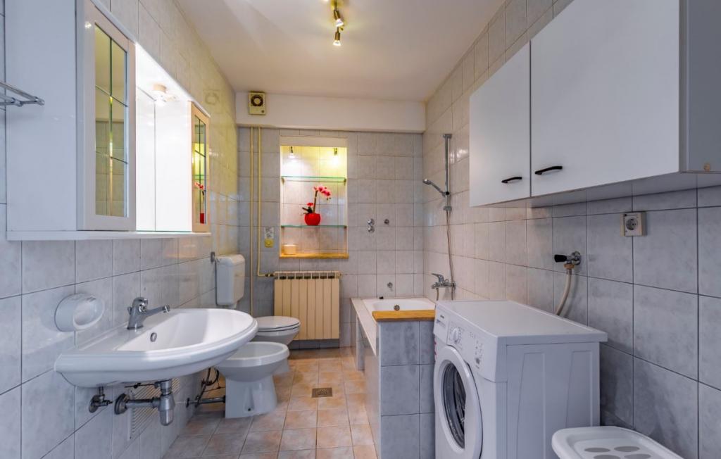 Byt se nachází v soukromém domě v klidné a tiché části Medulinu. Je ideální pro dvě rodiny. Byt obsahuje: 3 ložnice s manželskou postelí, obývací pokoj, kuchyň s jídelním koutem, 2 koupelny (jedna s vanou a WC, druhá se sprchou a WC). Má plně vybavenou kuchyňskou troubu, sporák, troubu, myčku nádobí, lednici, mikrovlnnou troubu, toustovač a kávovar. Další vybavení: pračka, satelitní TV, internetové připojení. Byt je obklopen vnitřní zahradou. V přední části bytu je terasa (30m²) s grilem, stolem a židlemi.