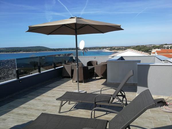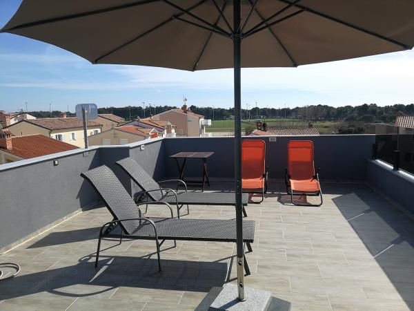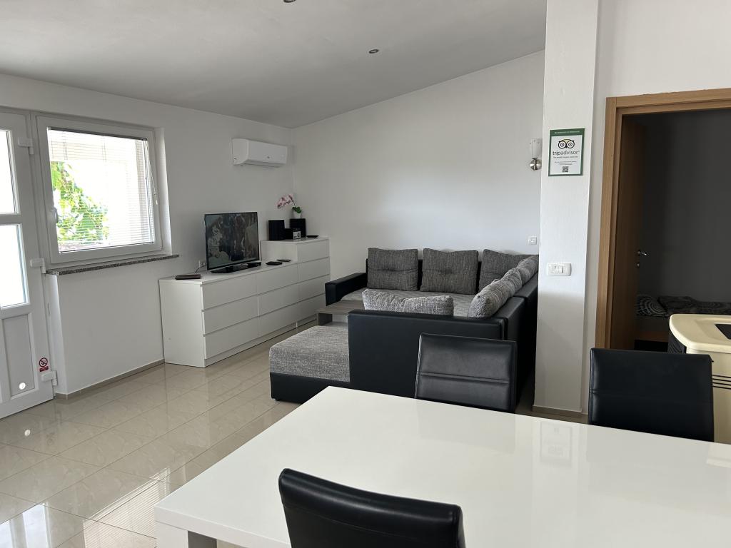 Za prvé, rezervace, komunikace mezi námi a majitele, a konečně platby proběhla bez jakýchkoli potíží. To byl náš první velký dojem. Pak, když jsme přijeli, najít byt byl trochu složitější (celá oblast je plná nových, úžasných malých objektů - velké zóně města), ale majitel pomohl na telefonu. Budova je velmi čisté, byt byl čistý (jako skoro bychom vstoupili do zcela nové místo), že nábytek je nový, moderní, včetně všech dodatečných věcí (nádobí, pračka, klimatizace ... etc.). .. všechno ve všem, to nemůže měřit až několik předchozích zkušeností. Ceja je skvělá a je optimální pro mladé lidi a pro rodiny s dětmi stejně. Okna uzavřít sebemenší zvuky strany města. Z terasy je nádherný výhled do okolí. Wi-Fi je k dispozici (nečekejte rychlé HD streamů z Youtube však, haha!), Dvě parkovací místa jsou k dispozici v zahradě (sdílené s níže bytu), ale tam je parkoviště hned za za plotem, takže pokud některý navíc auto je k dispozici (vzhledem k 6 osob pobyt, například), jste mohli vidět vaše auto 20 m od terasy. Moře je doslova 100m od hotelu, což znamená, že 2 minuty chůze se od skalnaté pláže (což je IMO největší podél pobřeží) a centrum města je také není příliš daleko (1,5 ~ 2 km, 15 minut chůze podél pobřeží). Majitel byl velmi užitečný, je vždy v blízkosti, takže cokoliv, vyvstává otázka, mohl by vám pomoci. Byli jsme tam s 6 dospělou osobu, která je stále zvládnutelná (ale Neočekávejte příliš mnoho o rozkládacím dvojitým pohovce v obývacím pokoji). Všichni ve všech, moderní výhled, jsou čisté a mimořádně připravené pokoje zaručené rekreační pobyt ve městě Medulin. V bytě je velký-velký hodnotu vzhledem k ceně!