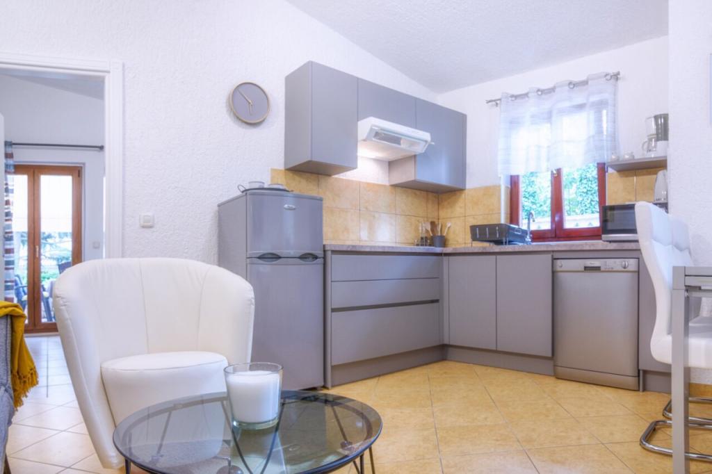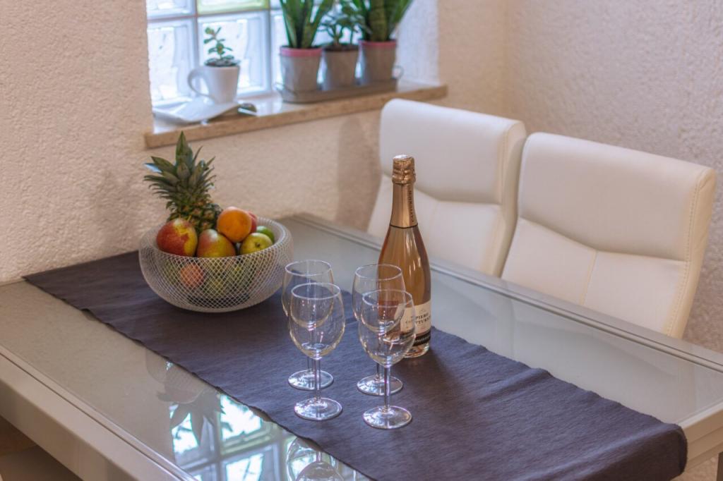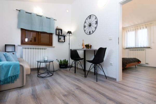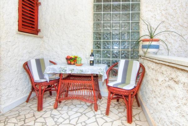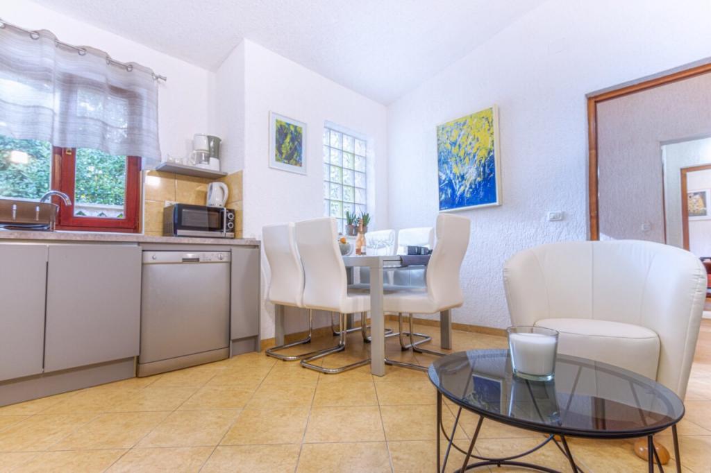 Velmi pěkný, přízemní, centrální, ale přesto klidný byt. Byt je plně vybaven, ale pokud by ještě něco chybělo, majitelka je vždy k dispozici. Byt bez problémů obsadí 2 dospělí a 2 děti, uvnitř i na velké terase je prostor na hraní. Parkování je možné v oploceném areálu Obchod s potravinami 1 minutu chůze. Místní restaurace (Konoba Willi) přímo přes ulici. Na oblázkovou pláž dojdete za 5 minut. Byt i pronajímatele mohu jen doporučit.