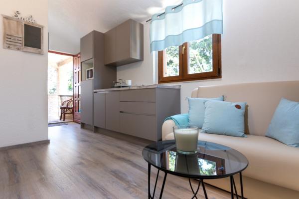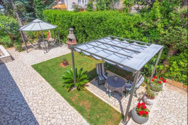 Plně vybavené apartmány se nacházejí 2-3 minuty chůze od pláže. Jsou obklopeny velkou zahradou a cypřiši. Mají soukromé parkoviště s automatickými dveřmi. Apartmán 4+ 1 má dvě ložnice s manželskou postelí a klimatizací. V obývacím pokoji je rozkládací pohovka pro 1 osobu. Apartmán má 2 terasy a altán s grilem, který je k dispozici hostům obou apartmánů. Kuchyň je plně vybavena včetně myčky. Apartmán 2 má ložnici s manželskou postelí a klimatizací, vybavenou kuchyň s myčkou, koupelnu, terasu a altán. Oba apartmány mají TV-SAT a Wi-fi, vysoušeč vlasů, žehličku a žehlicí prkno a apartmán 4 1 má také pračku . Ložní prádlo a osušky jsou zahrnuty v ceně a mění se každý týden.