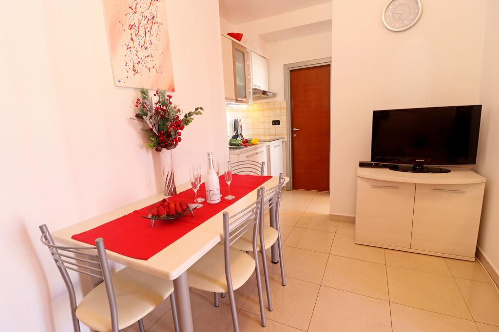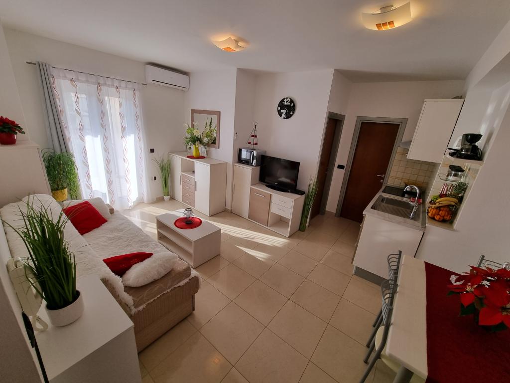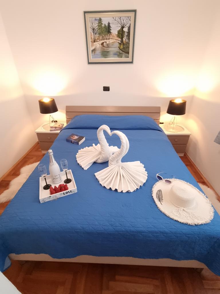 Přečtěte si více Ubytovací jednotkySamostatný check-in a self check-out. Kód klíče je zaslán den před příjezdem. Check in od 16:00 hod. (pokud je apartmán volný dříve) Check out do 10:00 hod. Platba v hotovosti nebo na náš bankovní účet. Veškeré detaily zasíláme po dohodě na mob (WhatsUp nebo Viber nebo SMS) nebo e-mailem. V apartmánu je k dispozici ložní prádlo a ručníky. Při rezervaci se platí 20 % z částky rezervace. V ceně není zahrnuta pobytová taxa 2Eur/os./den. Závěrečný úklid 85Eur není zahrnut v ceně. Dětská postýlka na vyžádání 20 Eur. Na vyžádání je k dispozici vysoká stolička pro děti. Na vyžádání jsou k dispozici kočárky.