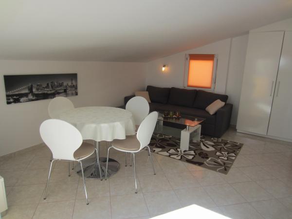 Apartmány Sara se nacházejí v nové a klidné části Medulin - Pošesi, a nachází se pouhých 100 metrů od pláže. Nejbližší pláž je skalnatá, a v blízkosti jsou i jiné typy pláže; štěrk, beton a písek. Procházky po pláži vede do centra Medulinu, kde ve večerních hodinách nabízí celou řadu akcí pro všechny věkové kategorie. Apartmány jsou moderně a čtyři z pěti apartmány mají nádherný výhled na moře.