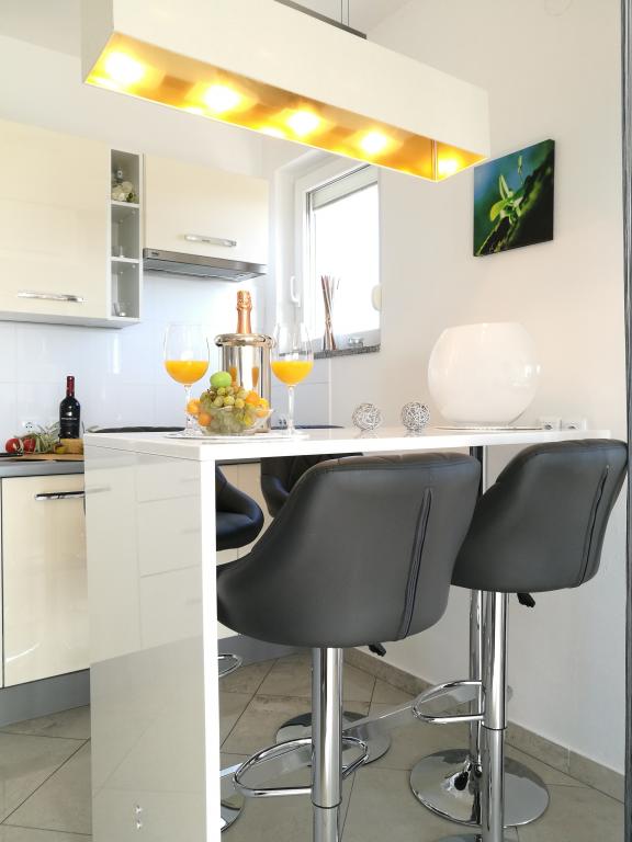 Apartmány "Villa Meli Medulin" se nachází v klidné části města Medulin na Istrijském poloostrově, oblíbené místo pro letní dovolenou a rekreaci. V domě je k dispozici bezplatné parkoviště, wi-fi a gril pro všechny hosty. V hotelu je dále k dispozici například: restaurace (Lidl, Plodine), restaurace, sportovní a zábavní zařízení. Čerstvý vzduch, čisté moře a klimatizace jsou zárukou příjemného odpočinku. Komfortně zařízené a plně vybavené apartmány jsou ideální volbou pro rodiny. Můžete si vybrat jeden nebo dva apartmány podle vlastního výběru. Apartmány se nachází 1000 metrů od moře. Všechny apartmány mají krásný přímý výhled na moře. Nedaleko se nachází také oblíbená písečná pláž Bjeca, park Kamenjak, ostrovy Ceja, Bodulaš, Levan. Užijte si a relaxujte na své dovolené, jistě vám poskytne Villa Meli Medulin apartmány. Hostům, kteří pobývají dva nebo více týdnů, pořádá host zdarma grilování.