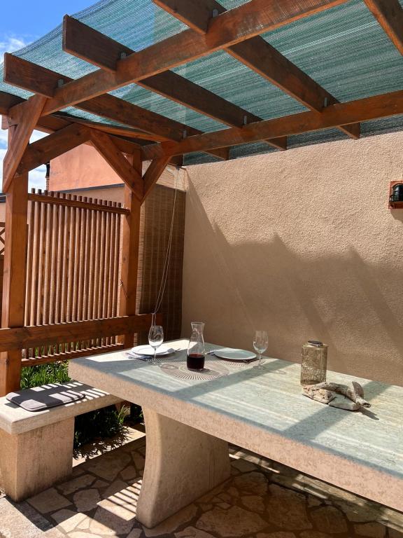 Duplexní nemovitost Mala Bella se nachází v centrální části Medulinu. Tento prázdninový dům má terasu, venkovní posezení s pergolou, výhled na záhon, obývací pokoj, TV s plochou obrazovkou, plně vybavenou kuchyň s myčkou a mikrovlnnou troubou, spíž, WC s pračka, v prvním patře, 2 ložnice a koupelna se sprchovým koutem. K dispozici je také venkovní sprcha. Dům je klimatizován a je zde možnost vytápění (ústředně). Gril pro hosty a dětská postýlka na vyžádání. K dispozici je bezplatné Wi-Fi a soukromé parkoviště. V domě se nesmí kouřit. Objekt se nachází 5 minut chůze do centra, obchodů a pekáren v okolí (5 minut) a 15 minut chůze na pláž. Mala Bella je 1,5 km od archeologického naleziště Vižula. Na nejbližší letiště Pula je to 9 km.