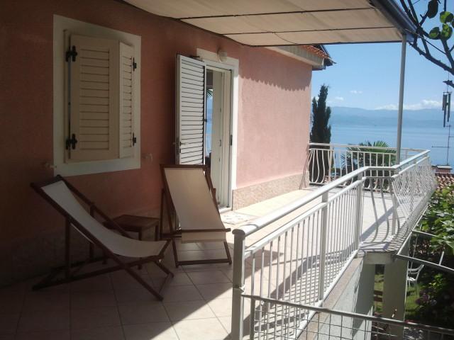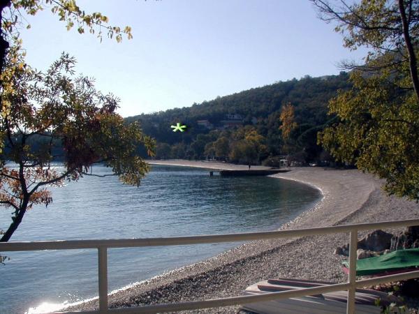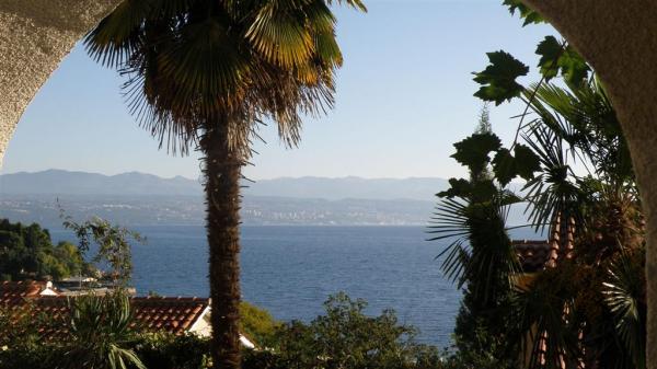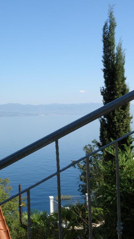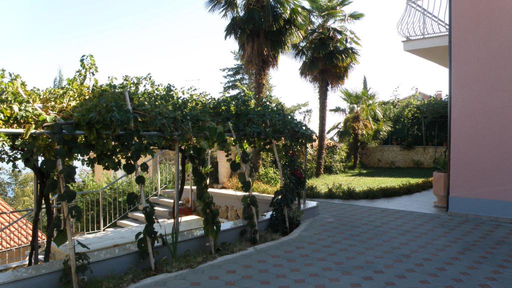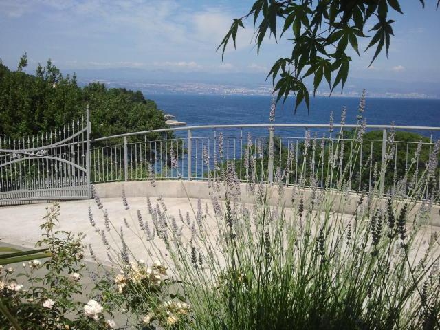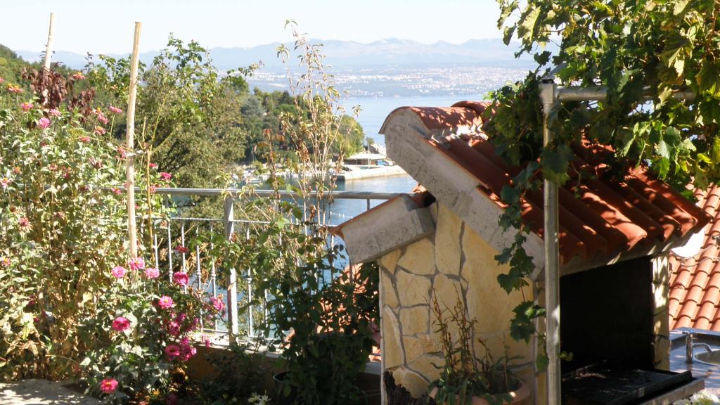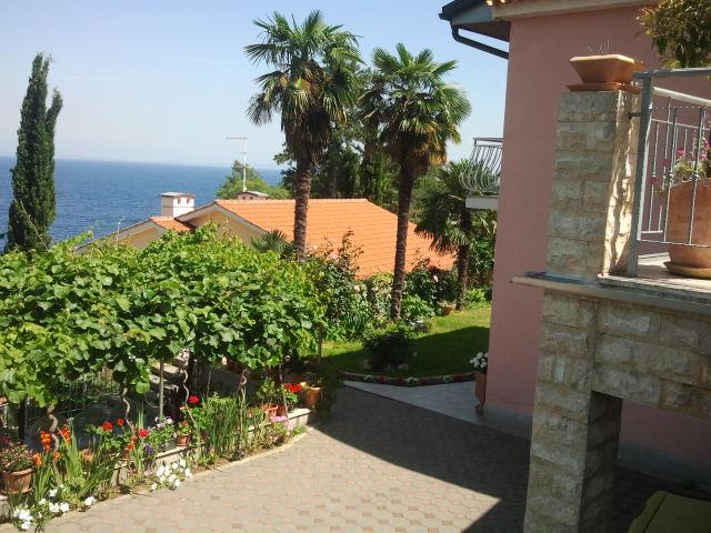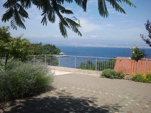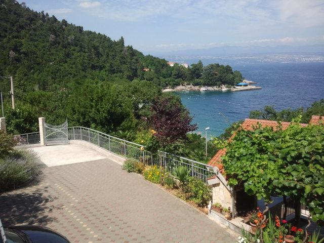 Dům se nachází v zeleni nad oblázkovou pláží, na svazích přírodního parku Učka. Na oploceném dvoře je parkoviště, květinová zahrada, trávník, zděný gril se stolem pro 12 osob. Na jižní a východní části domu jsou dva plně vybavené a moderně zařízené apartmány s terasami, které jsou většinou zastřešené a příjemné na pobyt po celý den. Oba apartmány a obě terasy mají výhled na moře. Hosté, kteří si pronajmou oba apartmány, mají k dispozici celou zahradu. Vzhledem k 60m blízkosti pláže a prostornému vnitřnímu i venkovnímu prostoru je ubytování ideální pro rodiny s dětmi a domácími mazlíčky. Výjimečně velká, intimní terasa apartmánu v prvním patře s krásným výhledem na moře, klidné prostředí, křišťálově čisté moře, možnost aktivní dovolené, lesní stezky, lungomare, horská kola, blízko Opatije. Apartmán v přízemí má dvě samostatné ložnice po 3 a 2 lůžkách + dvě koupelny, obývací pokoj + 2 přistýlky. Apartmán v patře má dva pokoje po 2 a 3 lůžkách.