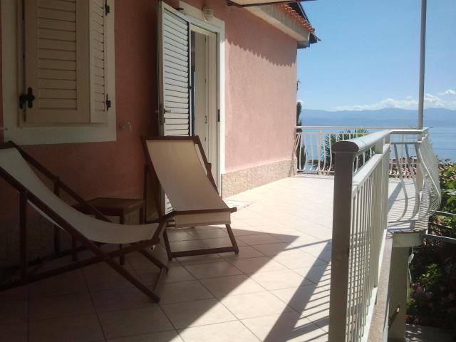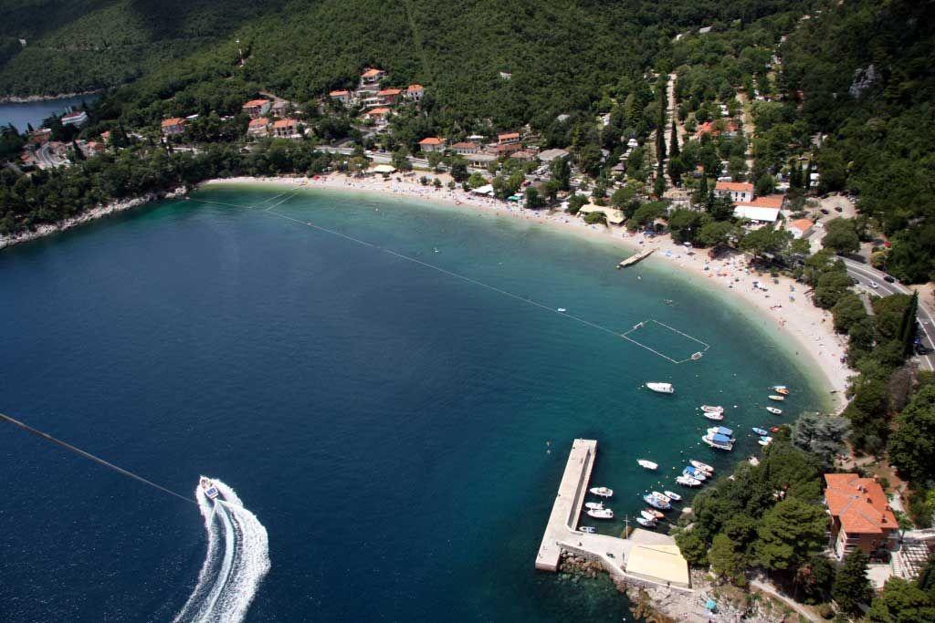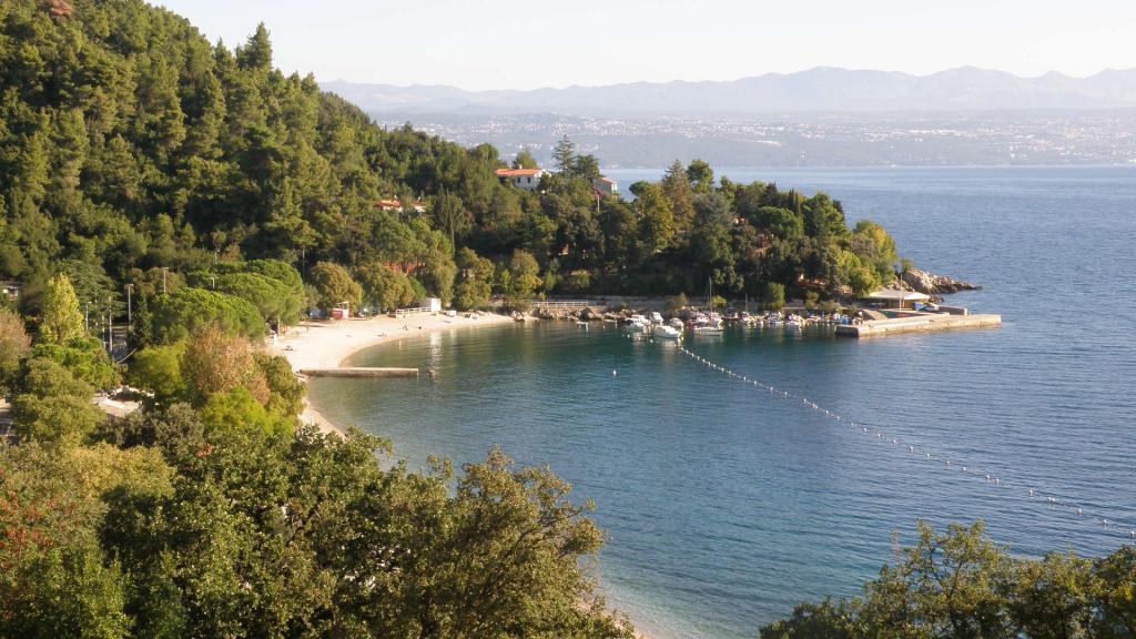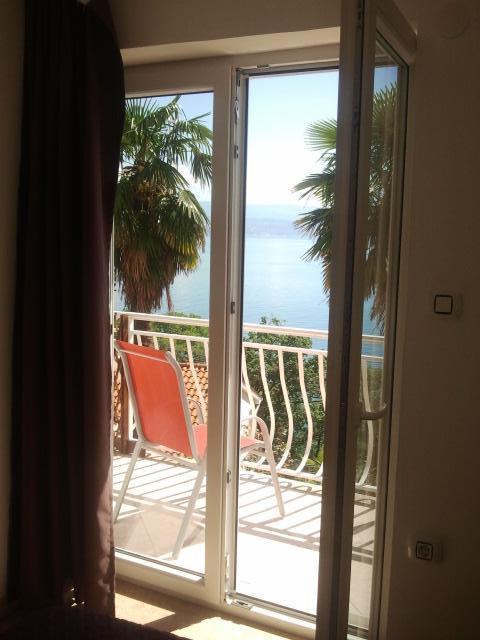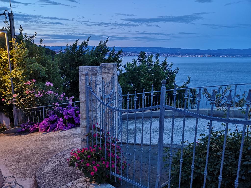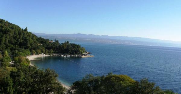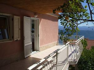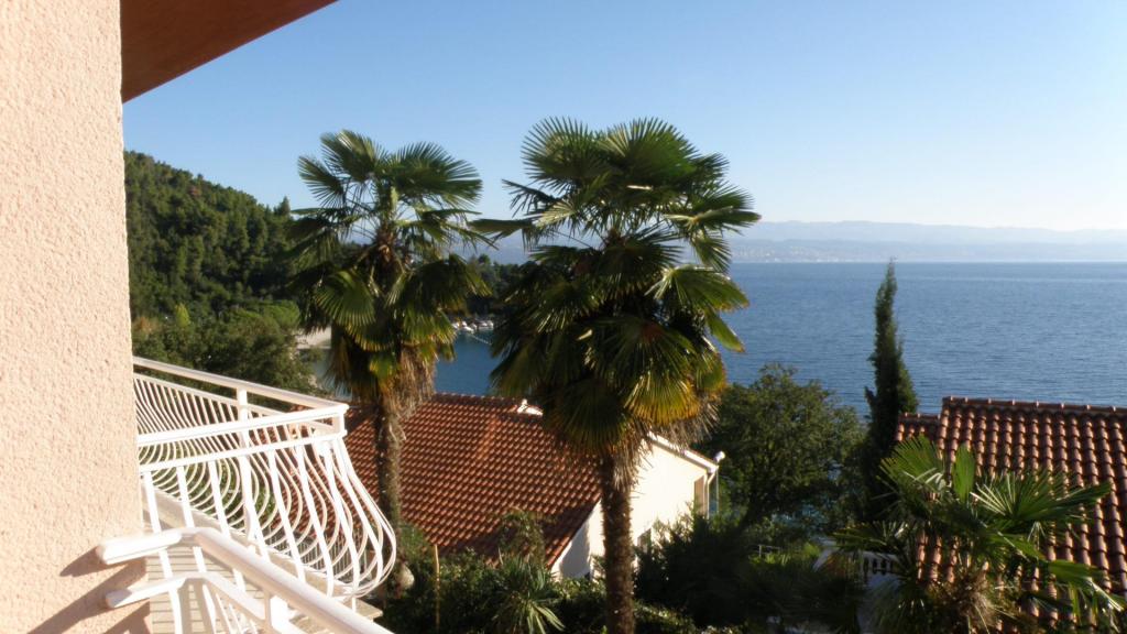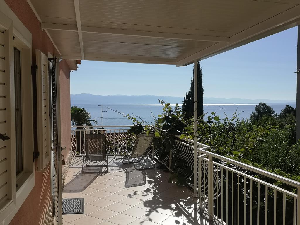 Dům se nachází v zeleni nad oblázkovou pláží, na svazích přírodního parku Učka. Na oploceném dvoře je parkoviště, květinová zahrada, trávník, zděný gril se stolem pro 12 osob. Na jižní a východní části domu jsou dva plně vybavené a moderně zařízené apartmány s terasami, které jsou většinou zastřešené a příjemné na pobyt po celý den. Oba apartmány a obě terasy mají výhled na moře. Hosté, kteří si pronajmou oba apartmány, mají k dispozici celou zahradu. Vzhledem k 60m blízkosti pláže a prostornému vnitřnímu i venkovnímu prostoru je ubytování ideální pro rodiny s dětmi a domácími mazlíčky. Výjimečně velká, intimní terasa apartmánu v prvním patře s krásným výhledem na moře, klidné prostředí, křišťálově čisté moře, možnost aktivní dovolené, lesní stezky, lungomare, horská kola, blízko Opatije. Apartmán v přízemí má dvě samostatné ložnice po 3 a 2 lůžkách + dvě koupelny, obývací pokoj + 2 přistýlky. Apartmán v patře má dva pokoje po 2 a 3 lůžkách.