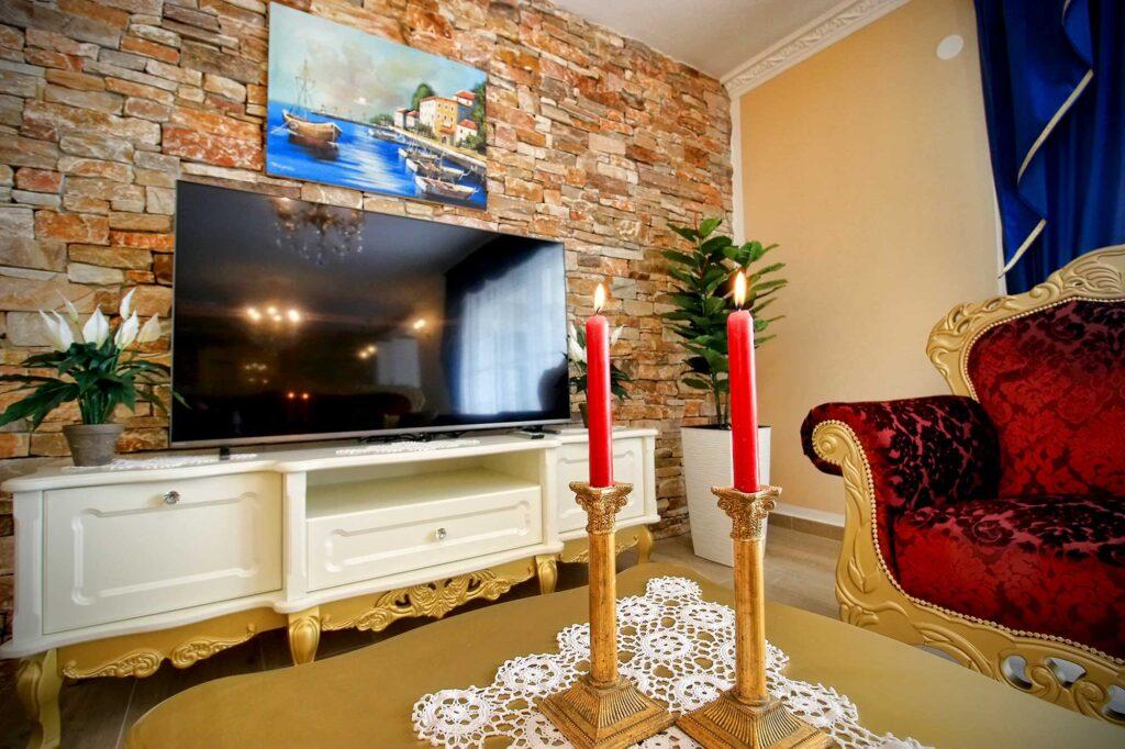 Mezi hlavní rysy vily Marija Metajna patří její barokní design, který dodává nádech elegance, její prostorné uspořádání, které poskytuje dostatek prostoru k odpočinku. Dobře vybavené ložnice a moderní koupelny pro pohodlí a soukromí, stejně jako příjemné bydlení. Plně vybavené pokoje, kuchyně pro relaxaci a kulinářský požitek. Tento luxusní dům na ostrově Pag skutečně nabízí nezapomenutelný zážitek z dovolené pro hosty, kteří hledají luxus a pohodlí v úžasném prostředí. Ať už se hosté rozhodnou stylově relaxovat nebo prozkoumat krásy ostrova Pag, Villa Marija Metajna slibuje mimořádný pobyt plný luxusu a relaxace.